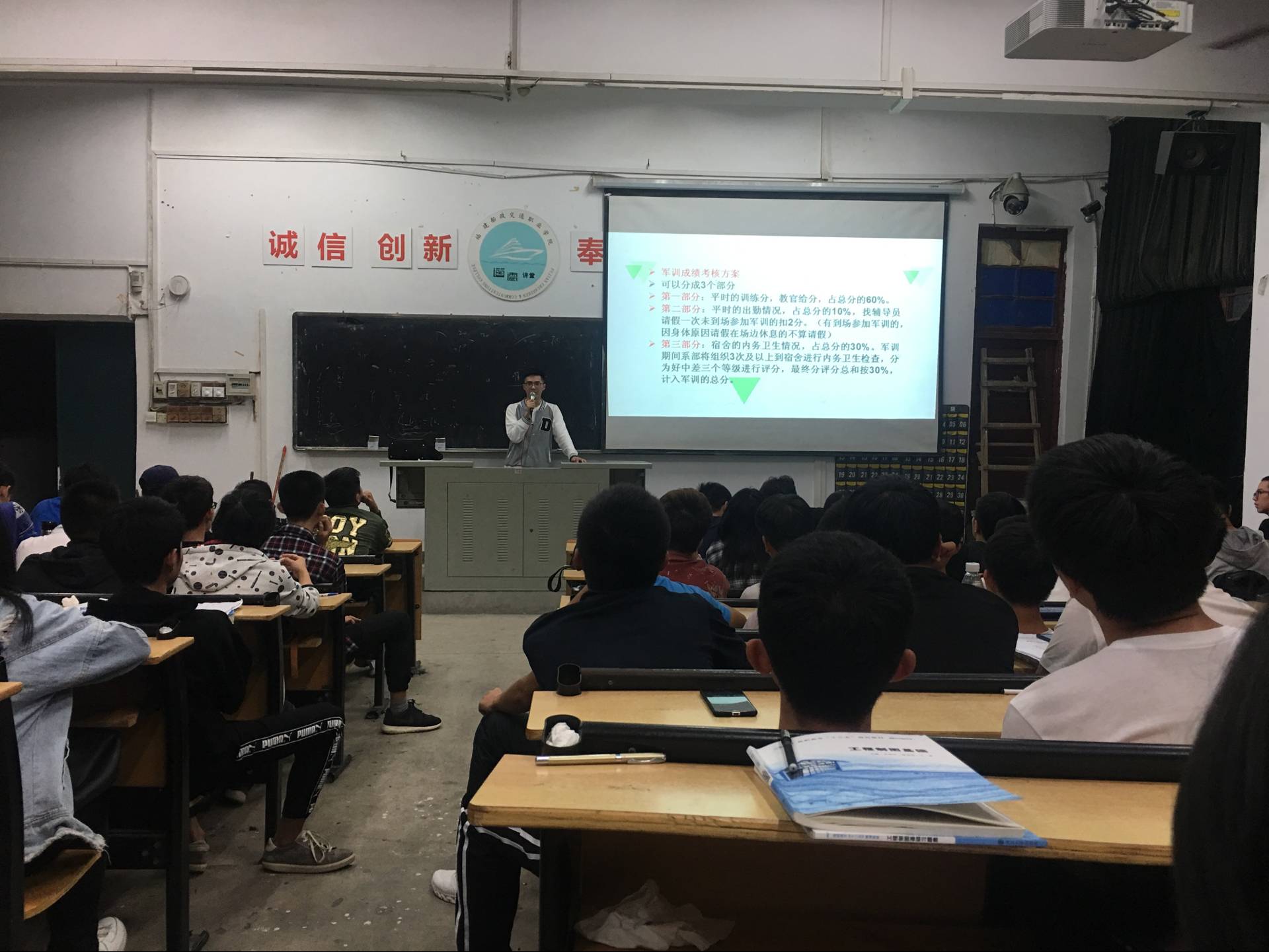 按照學院統(tǒng)一部署和系部統(tǒng)一安排,10月22日至27日,我系2018級新生輔導員組織開展“2018級軍訓動員大會”。在大會上,輔導員就2018級新生軍訓事宜進行統(tǒng)一安排部署,主要強調(diào)了軍訓重要性、軍訓考核要求、軍訓注意事項等內(nèi)容,重點強調(diào)了軍訓期間的安全問題,要求學生務必調(diào)整心態(tài),量力而行,軍訓出操前必須吃早餐,注意補充營養(yǎng)等。