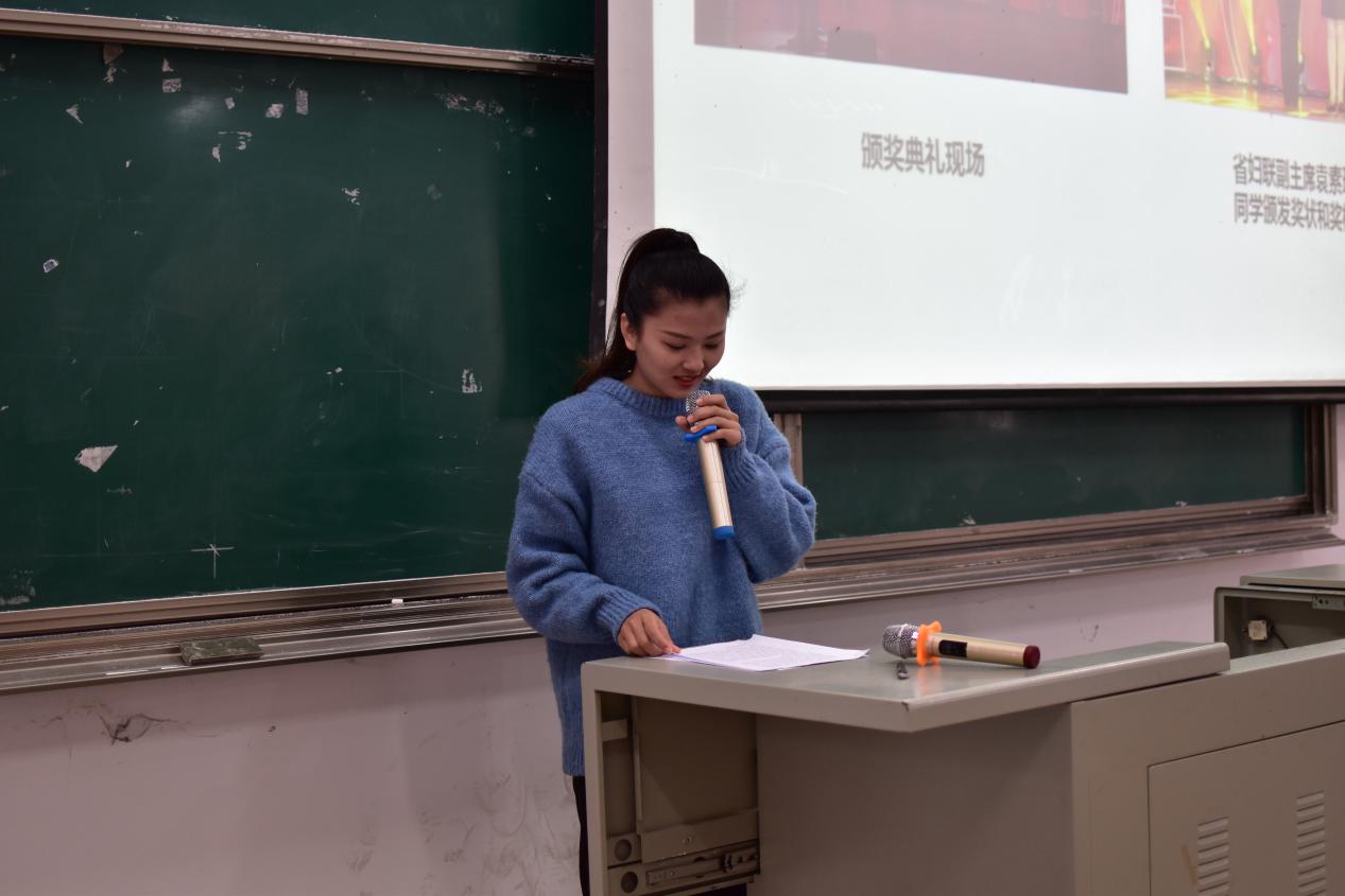 隨后,林鋮老師對黃源佳的獲獎經(jīng)歷進行了介紹。林鋮老師在介紹中強調(diào),黃源佳從未想過放棄自己,而是讓她更加明白了生命的可貴,面對病魔黃源佳卻從不后退,命運無常但她決不放棄。林鋮老師介紹說:“黃源佳同學(xué)上臺領(lǐng)獎時,主持人請她分享一下自己此刻最想說的話。她說,她始終相信越努力,越幸運。”林鋮老師強調(diào),黃源佳出身于貧困生的家庭,加上疾病的折磨,不但沒有擊垮她,反而給了她強大的毅力,三年來她從未想過放棄自己,而是讓她更加明白了生命的可貴。作為新時代的青少年,同學(xué)們更應(yīng)該弘揚和學(xué)習(xí)她的精神,認真學(xué)習(xí)黃源佳同學(xué)自立自強的作風(fēng),從現(xiàn)在做起,從小事做起,展現(xiàn)我系學(xué)子風(fēng)采。