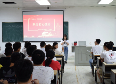 教師黨員陳慧彬表示,踐行初心使命就是落實立德樹人的根本任務(wù),培養(yǎng)德智體美全面發(fā)展的社會主義建設(shè)者和接班人。作為輔導(dǎo)員,我們把學(xué)習(xí)十九大精神落實在學(xué)生的思想政治教育中,根據(jù)新時代的要求,為國家和社會作出自己應(yīng)有的貢獻。學(xué)生黨員王夢可表示,我們應(yīng)該明確我們的今天的幸福生活來之不易,作為新時代的青年學(xué)子理應(yīng)肩負起民族復(fù)興的重任,踐行初心使命,努力學(xué)習(xí),提高自身技能,以實際行動報效國家和人民。