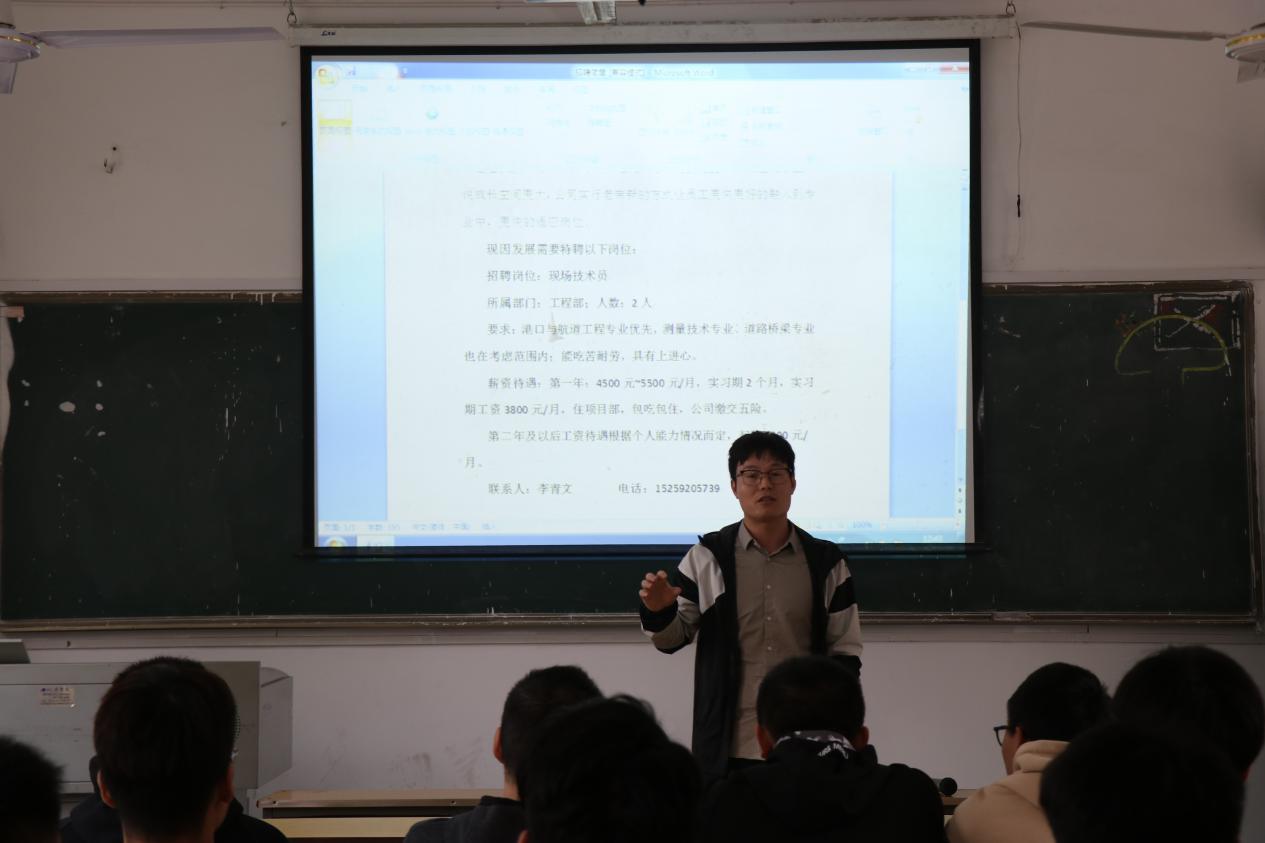 為了讓同學(xué)們了解當(dāng)下就業(yè)市場(chǎng)所需要的人才,同時(shí)為我校應(yīng)屆畢業(yè)生提供更好的就業(yè)平臺(tái),2019年11月22日,道路工程系在高蓋山校區(qū)3號(hào)樓205教室舉行福建省泓禹建設(shè)工程有限公司2020屆校園招聘會(huì)。