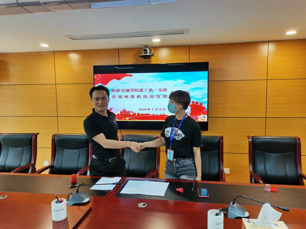 7月8日下午,道工系第一黨支部與福州市港口發(fā)展中心政治處黨支部簽署結(jié)對(duì)共建協(xié)議。雙方領(lǐng)導(dǎo)、支部書(shū)記、教師代表等參加了儀式。