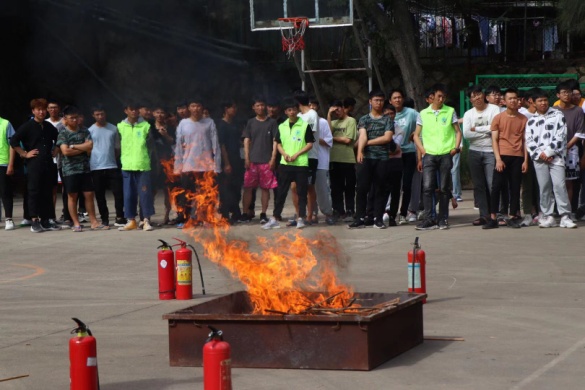 在高蓋山籃球場(chǎng),首先由學(xué)院自律會(huì)負(fù)責(zé)人向同學(xué)講解宿舍消防安全的重要性及用電相關(guān)注意事項(xiàng);接著由校園110聯(lián)動(dòng)隊(duì)隊(duì)員為同學(xué)們講解并展示消防水帶和滅火器的正確使用方法;隨后各班代表出場(chǎng)進(jìn)行滅火練習(xí);最后師生代表共同在橫幅上簽字,鄭重承諾嚴(yán)格遵守校園消防安全規(guī)則。