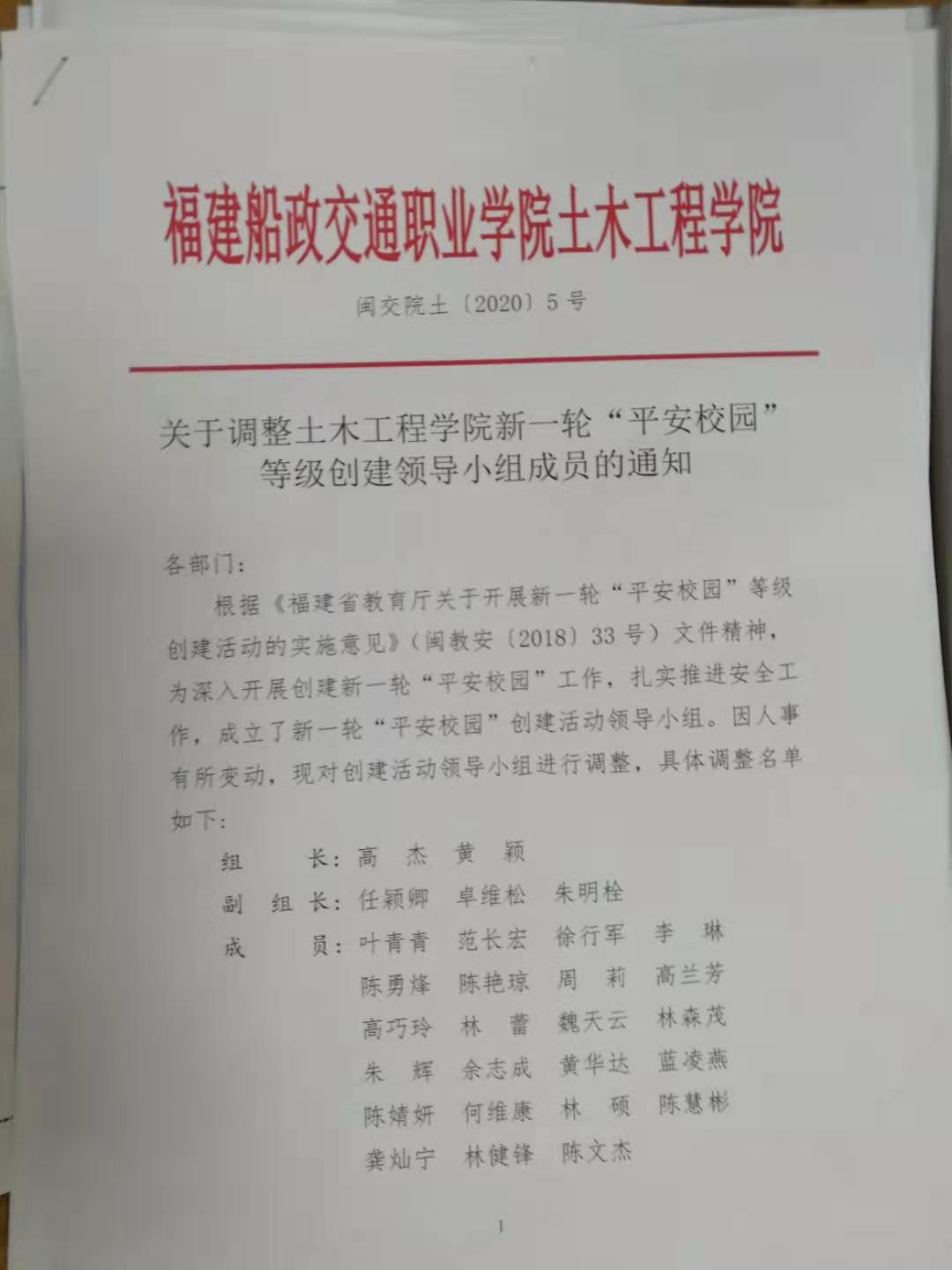 關(guān)于土木工程學(xué)院新一輪“平安校園”等級創(chuàng)建領(lǐng)導(dǎo)小組成員的通知