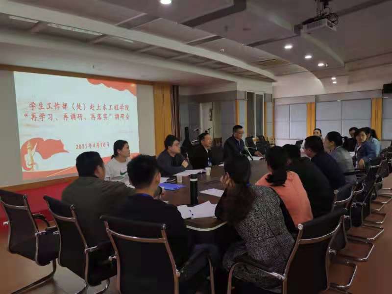 為貫徹落實(shí)習(xí)近平總書記來閩考察重要講話精神,推進(jìn)“再學(xué)習(xí)、再調(diào)研、再落實(shí)”活動開展,2021年4月16日上午,黨委學(xué)生工作部(處)王心金處長一行四人走訪土木工程學(xué)院調(diào)研,土木工程學(xué)院黨總支副書記任穎卿和全體輔導(dǎo)員參加了調(diào)研座談會。