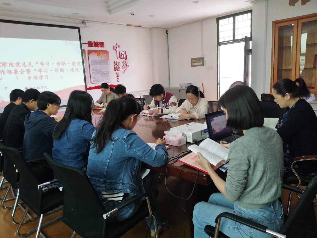 為迎接中國共產(chǎn)黨成立100周年,學(xué)習(xí)貫徹新修訂的《中國共產(chǎn)黨普通高等學(xué)?;鶎咏M織工作條例》,貫徹落實(shí)中央關(guān)于開展黨史學(xué)習(xí)教育和省委關(guān)于開展“再學(xué)習(xí)、再調(diào)研、再落實(shí)”活動的要求,學(xué)習(xí)調(diào)研,對標(biāo)對表,查找問題,重在建設(shè),推動我院黨建質(zhì)量全面創(chuàng)優(yōu)全面提升。4月26日上午,我院于科技樓1009會議室召開黨總支“學(xué)習(xí)·診斷·建設(shè)”行動工作部署會暨“學(xué)習(xí)·診斷·建設(shè)” 專項(xiàng)學(xué)習(xí)。