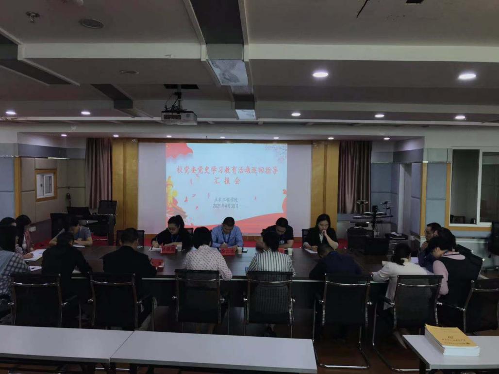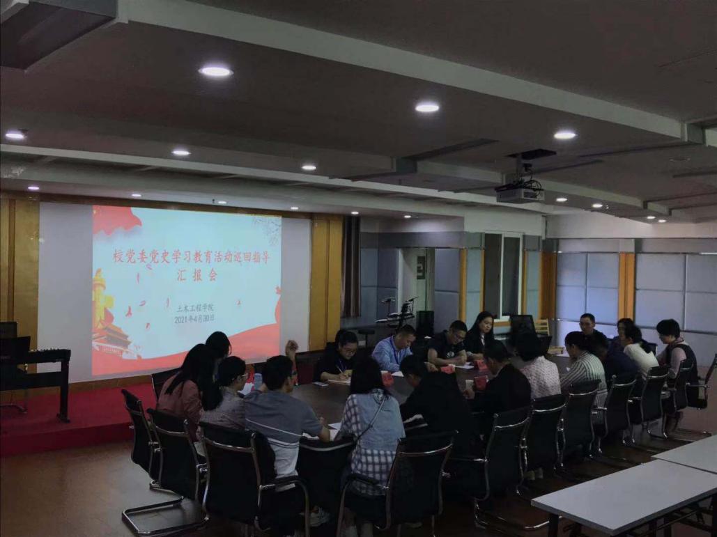 會(huì)議向指導(dǎo)組匯報(bào)了土木工程學(xué)院黨史學(xué)習(xí)教育前期工作部署、進(jìn)展、特色工作及下一階段重點(diǎn)工作。黨史學(xué)習(xí)教育開展以來,土木工程學(xué)院認(rèn)真貫徹落實(shí)上級要求,從加強(qiáng)組織領(lǐng)導(dǎo)入手,開好“五種會(huì)議”,堅(jiān)持“四個(gè)結(jié)合”,抓好“四項(xiàng)動(dòng)作”,大力推進(jìn)黨史學(xué)習(xí)教育迅速升溫,為學(xué)院雙高建設(shè)和高質(zhì)量發(fā)展注入強(qiáng)大動(dòng)能。