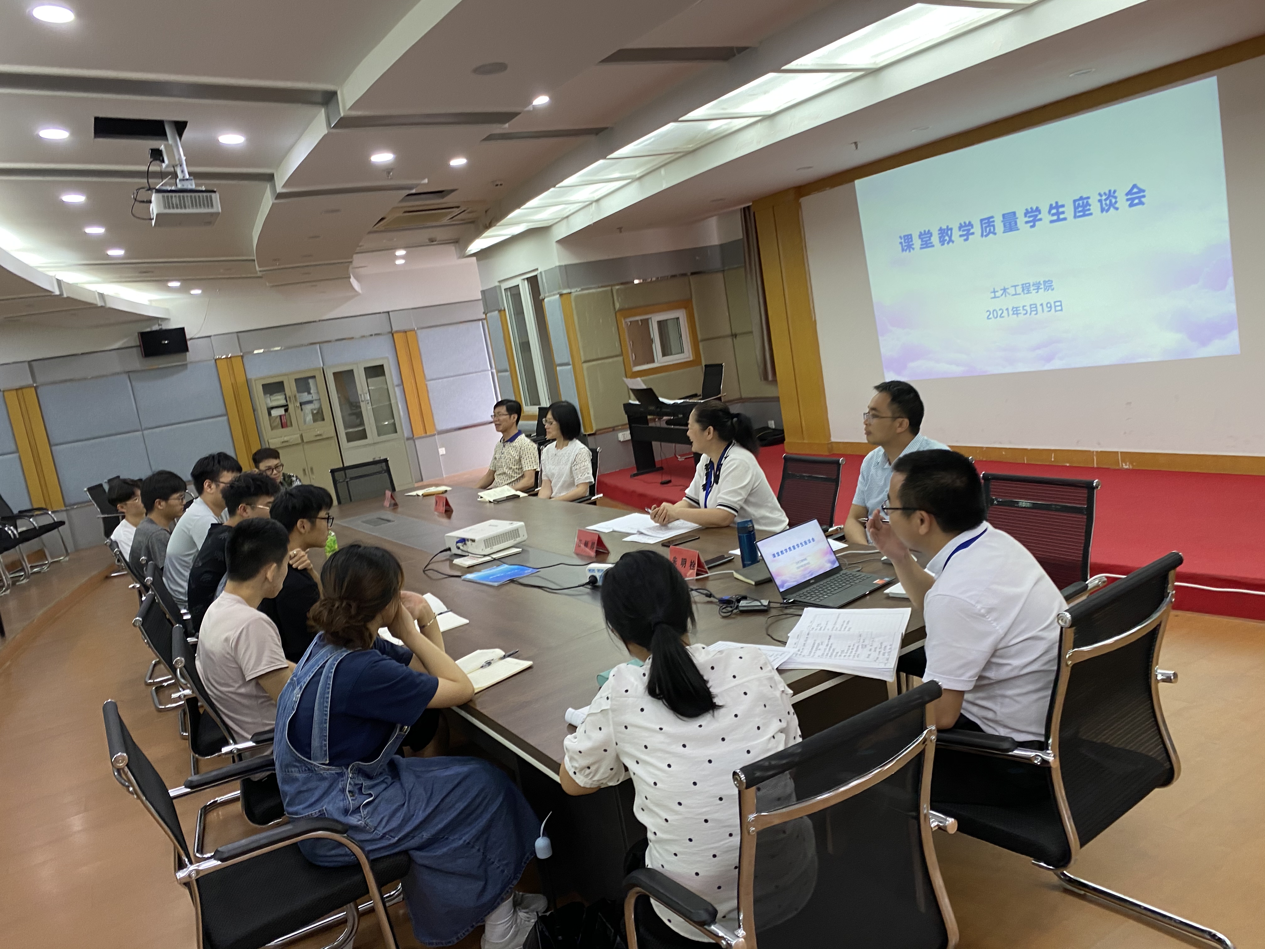 會(huì)議由黨總支副書記任穎卿主持,土木工程學(xué)院副院長(主持工作)黃穎博士、教學(xué)副院長卓維松和朱明栓以及20級(jí)、19級(jí)的全體班長參加了座談會(huì)。會(huì)上同學(xué)們針對(duì)學(xué)院的教師課堂教學(xué)狀態(tài)、教學(xué)環(huán)境以及教學(xué)設(shè)施設(shè)備等提出了許多有益的意見和建議。