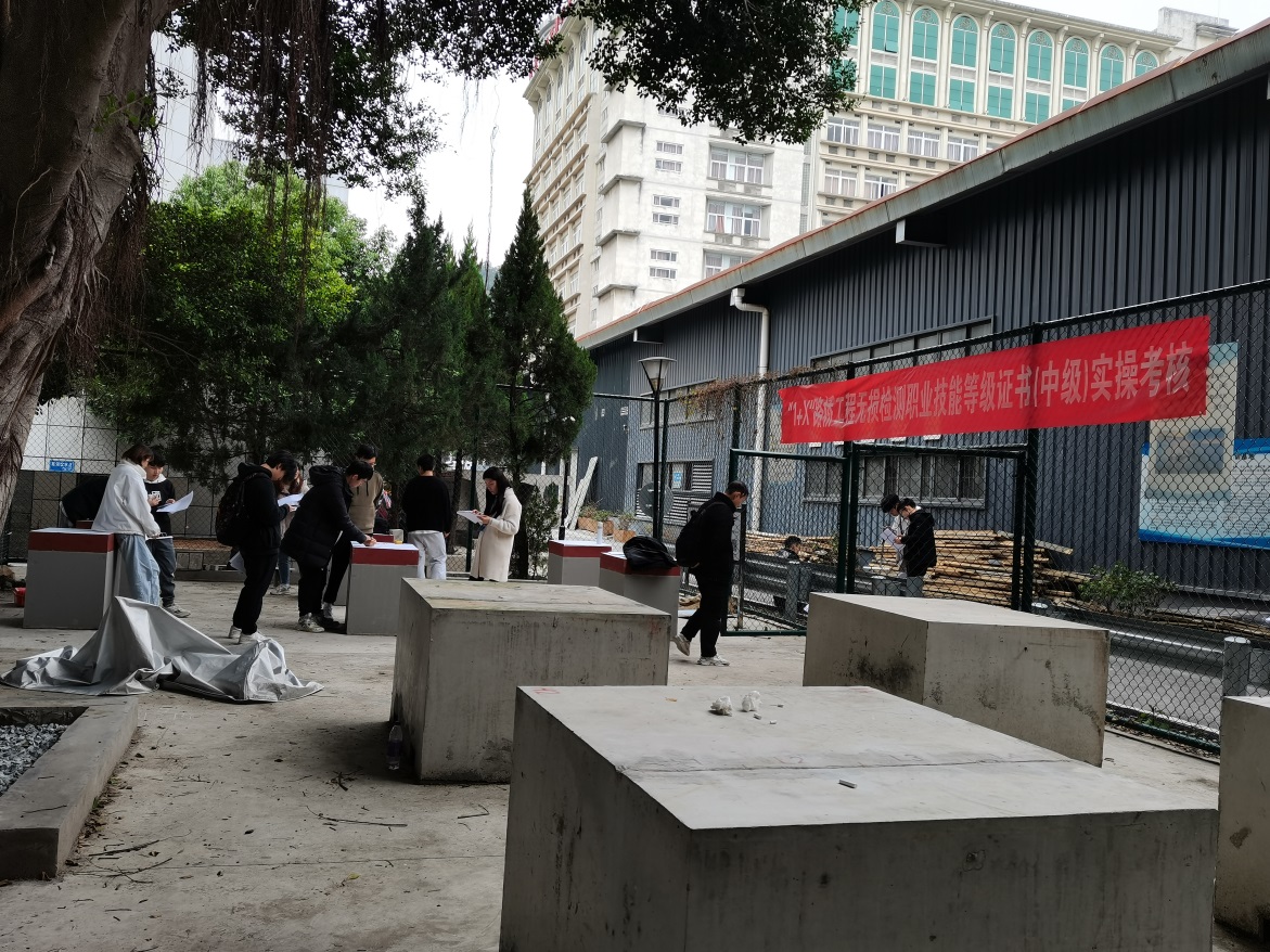 本次路橋工程無損檢測職業(yè)技能等級證書(中級)由評價組織四川升拓檢測技術(shù)股份有限公司負(fù)責(zé)實施,理論考試采取線上考試方式進(jìn)行,實操考核采用線下在智慧檢測實訓(xùn)基地實施。土木工程學(xué)院從研讀政策、動員學(xué)生、培訓(xùn)教師、準(zhǔn)備場地到組織考試等方面做了大量前期準(zhǔn)備。工程檢測課程組教師悉心指導(dǎo),學(xué)生刻苦訓(xùn)練,學(xué)習(xí)效果顯著。評價組織及考評員嚴(yán)格按照計劃組織考核,整個考試組織嚴(yán)密、井然有序、嚴(yán)格公正,順利完成各項任務(wù)。