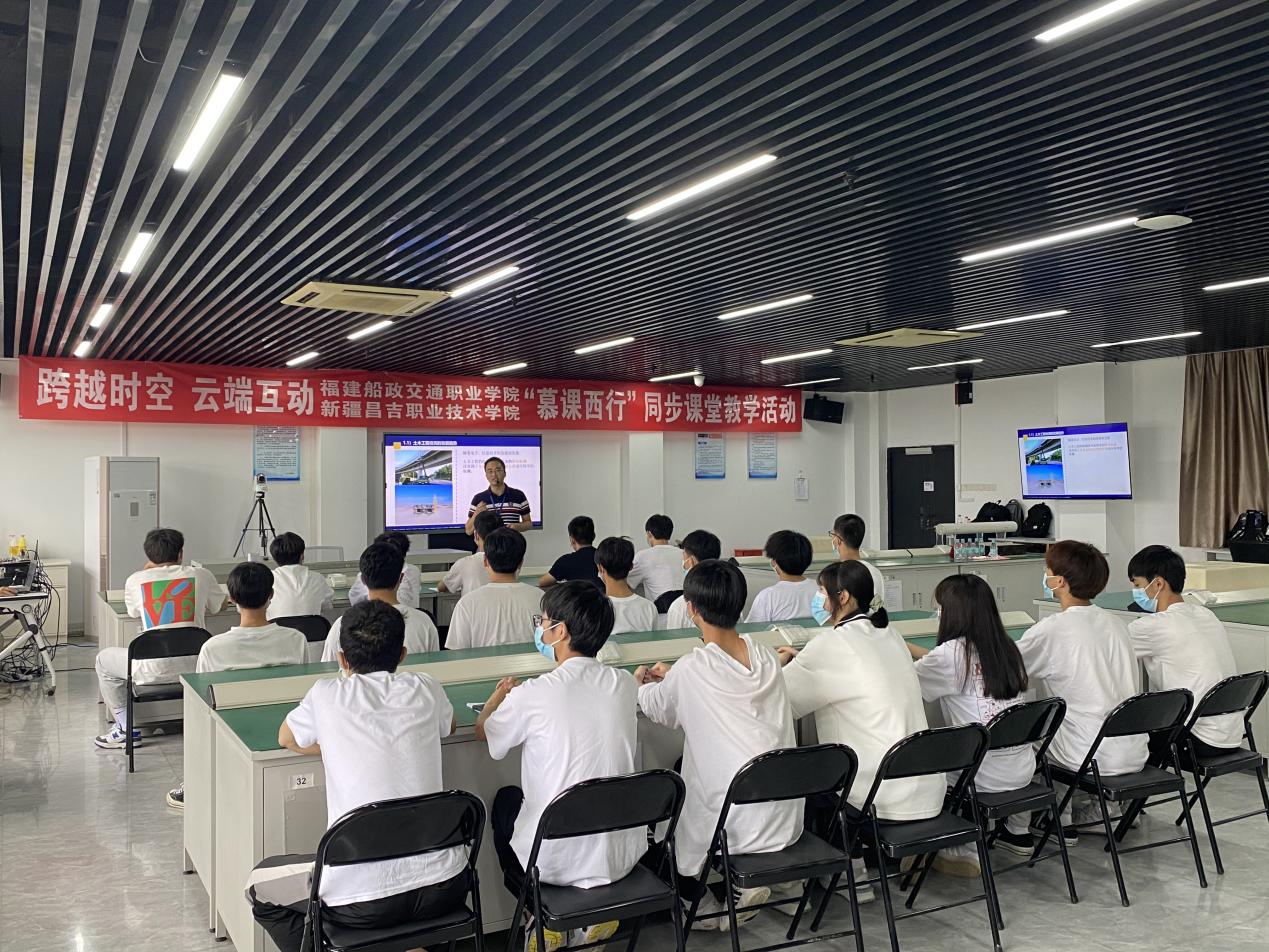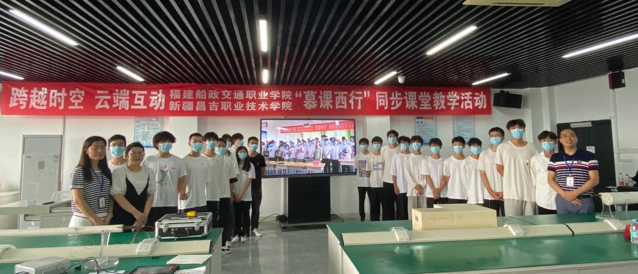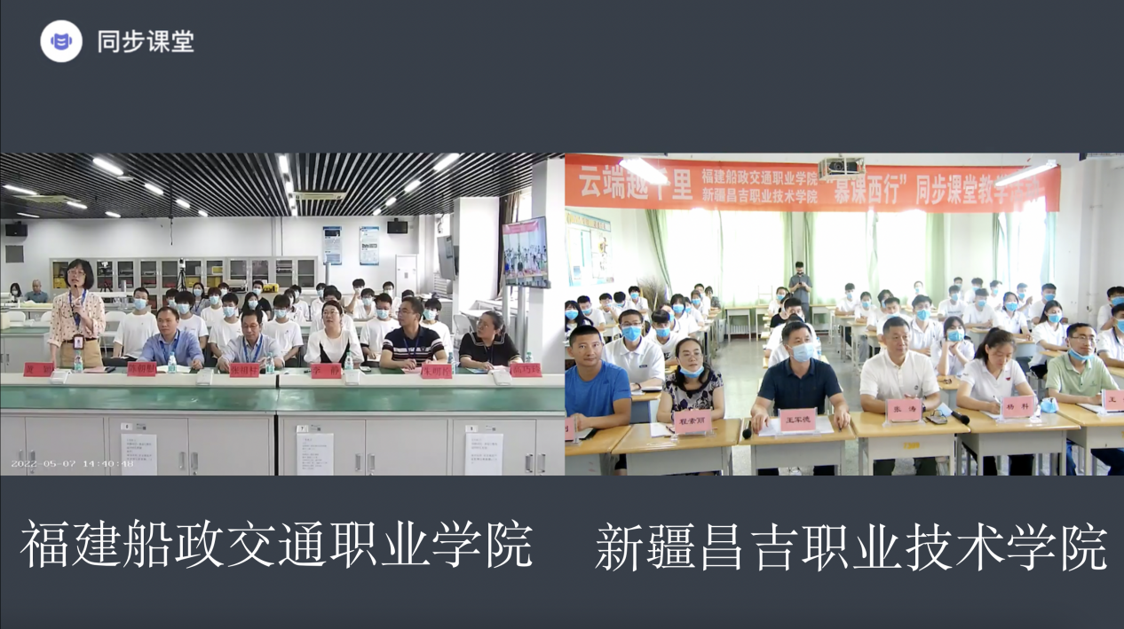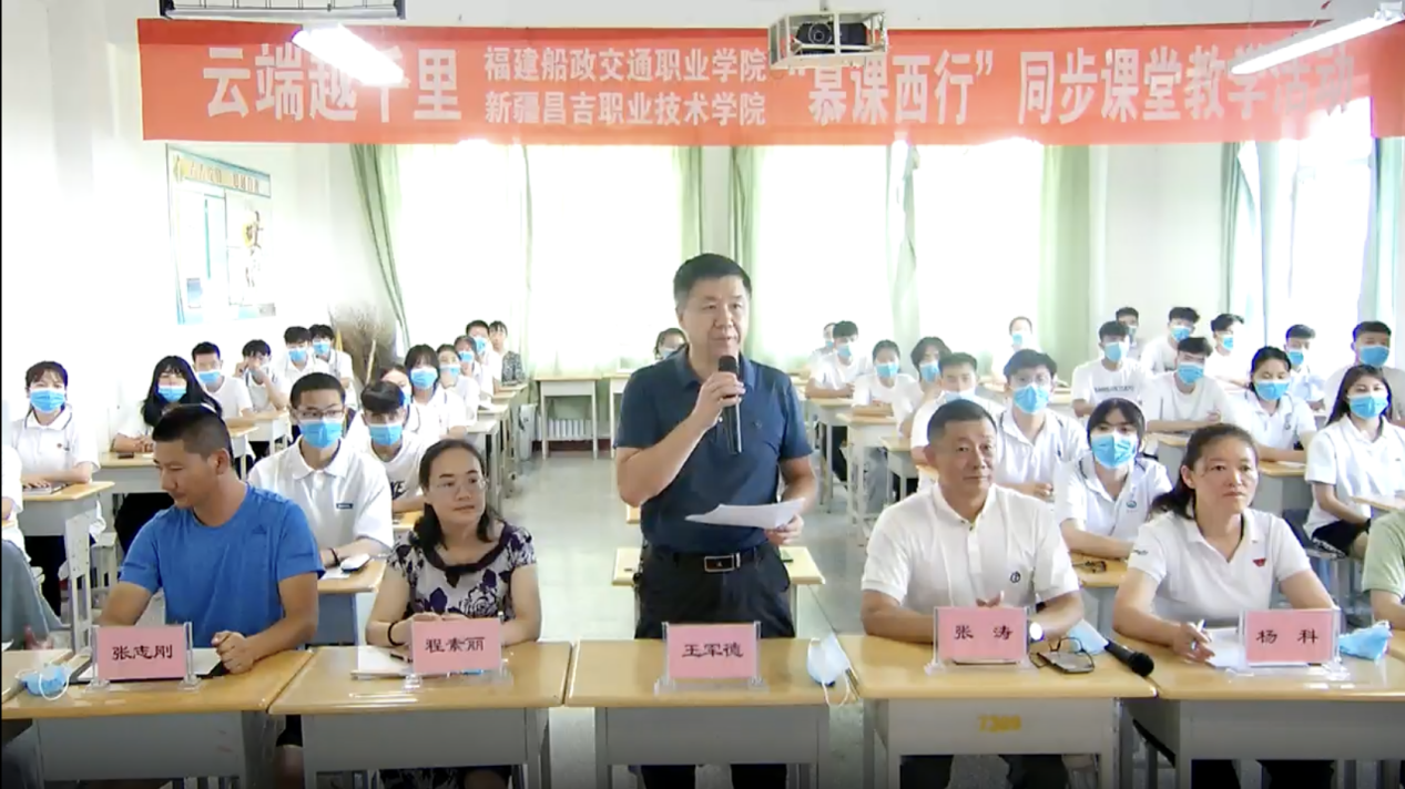 新疆昌吉職業(yè)技術(shù)學(xué)院副院長王軍德在啟動儀式上介紹了學(xué)校的基本情況,對福建船政交通職業(yè)學(xué)院領(lǐng)導(dǎo)和老師們的辛苦付出表示衷心的感謝,同時希望兩校之間能產(chǎn)生更多合作項目,并祝愿參與此次同步課堂的老師和同學(xué)們,經(jīng)歷一次神奇的跨時空的美好學(xué)習(xí)體驗。