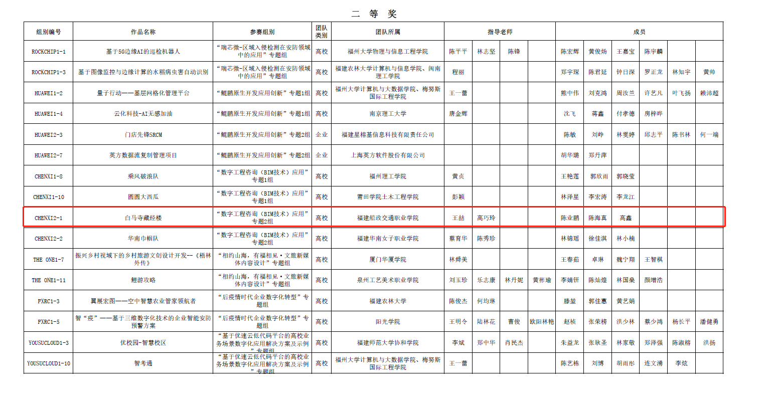 2022年12月3日,第十二屆海峽兩岸信息服務(wù)創(chuàng)新大賽暨福建省第十六屆計算機軟件設(shè)計大賽“數(shù)字工程咨詢(BIM技術(shù))應(yīng)用”賽項決賽在福州軟件園舉行。大賽由福建省工業(yè)和信息化廳、福建省教育廳、福建省人力資源和社會保障廳、福建省商務(wù)廳、福建省科學(xué)技術(shù)廳、福建省委工會、共青團福建省委和福建省中華職業(yè)教育社等八廳委聯(lián)合主辦。因疫情原因,本項賽事通過線上競賽的形式進行。福建省26所高校近200項作品參賽,經(jīng)過激烈競爭,僅有12項作品晉級本項賽事的決賽階段。