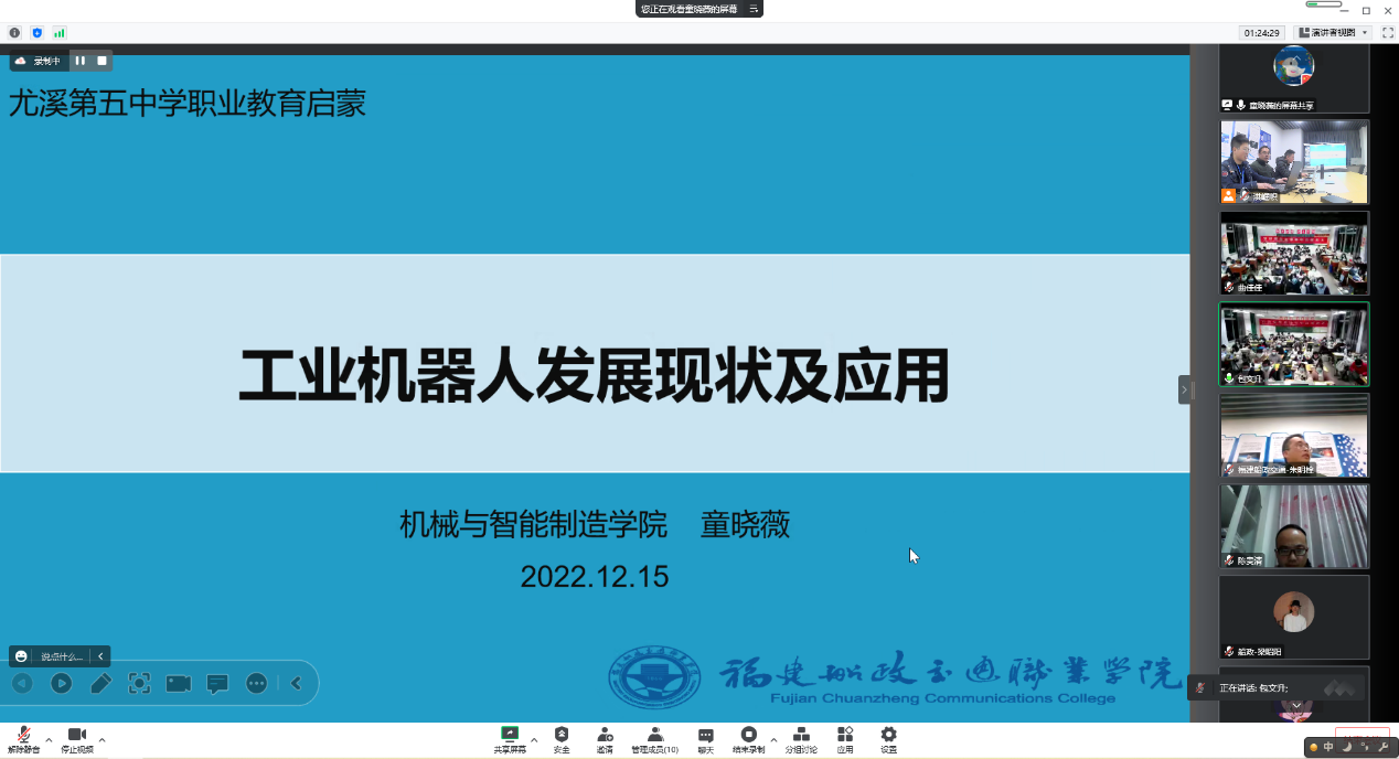 為貫徹落實(shí)《國家職業(yè)教育改革實(shí)施方案》、《關(guān)于推動(dòng)現(xiàn)代職業(yè)教育高質(zhì)量發(fā)展的意見》,不斷踐行《中華人民共和國職業(yè)教育法》,土木工程學(xué)院協(xié)同機(jī)械與智能制造學(xué)院于2022年12月15日面向尤溪縣第五中學(xué),通過線上方式開展了高中生職業(yè)啟蒙教育活動(dòng)。