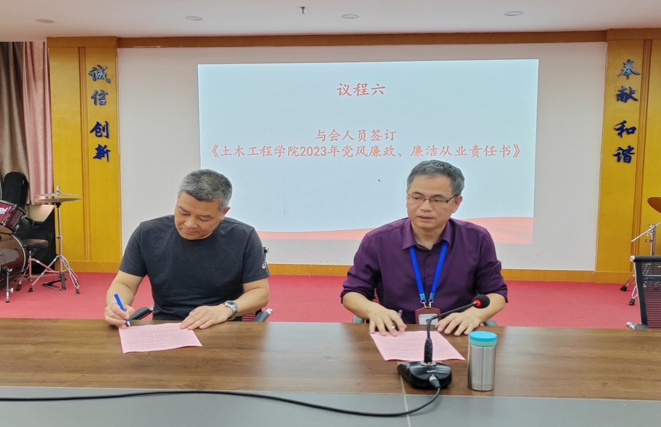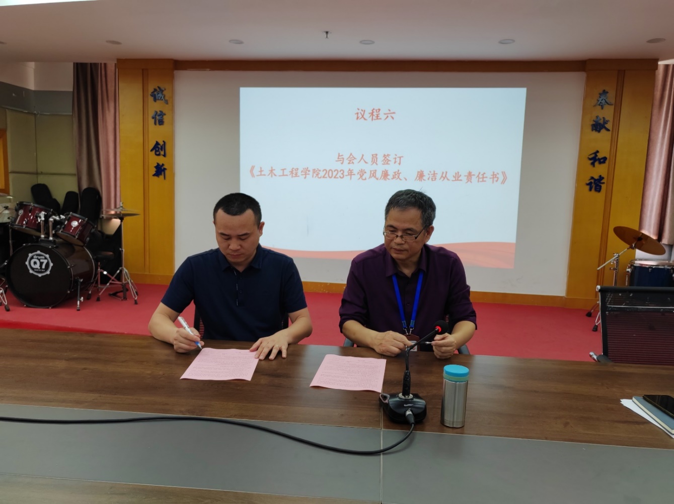 高杰同志代表土木工程學(xué)院黨總支和與會(huì)人員簽訂《廉潔從業(yè)責(zé)任書》(二)