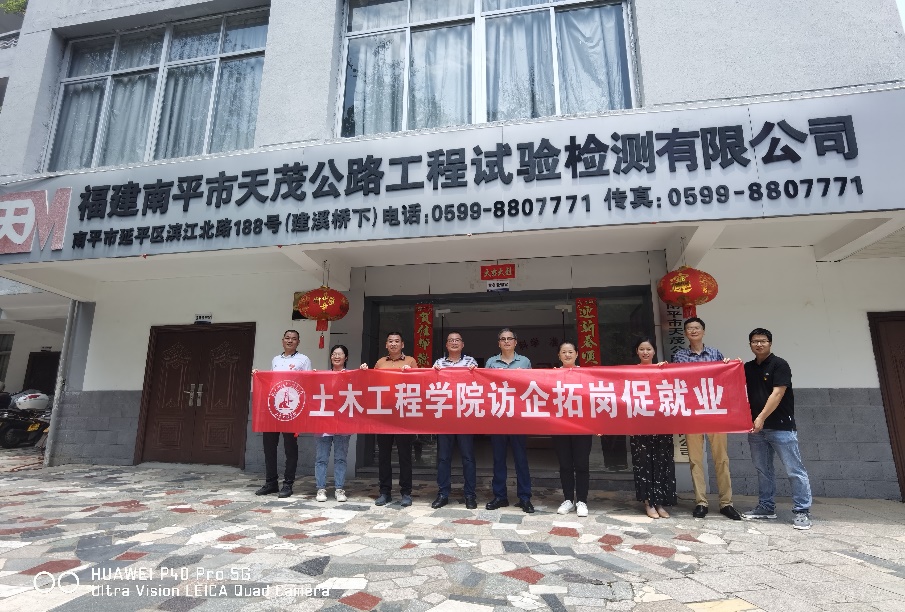 5月19日,土木工程學(xué)院黨總支書記高杰一行人赴福建南平天茂公路工程試驗檢測有限公司訪企拓崗。
