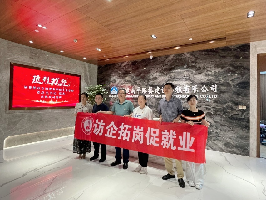5月19日,土木工程學(xué)院黨總支書記高杰一行人赴福建南平路橋建設(shè)工程有限公司調(diào)研走訪,開展交流合作,全面深化校企合作及供需對接。