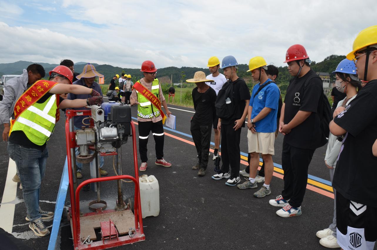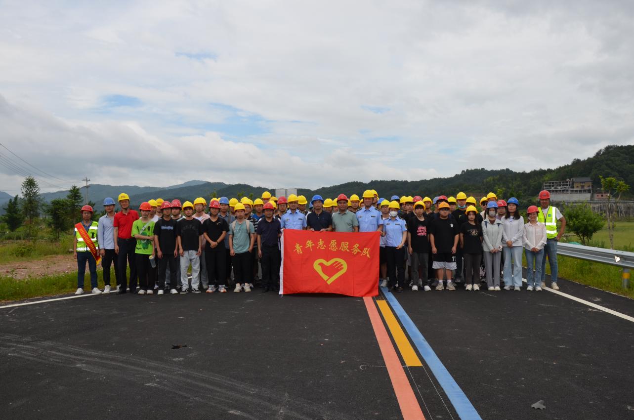 土木工程學(xué)院副院長朱明栓帶領(lǐng)土木工程學(xué)院第三、第四、第八黨支部黨員教師、21道路與橋梁工程技術(shù)專業(yè)學(xué)生119人,前往政永高速大橋互通及連接線工程喬洋至溪洲段公路工程(環(huán)翠屏湖農(nóng)村公路)施工現(xiàn)場(chǎng),開展質(zhì)安檢測(cè)志愿服務(wù),為鄉(xiāng)村振興提供堅(jiān)實(shí)的交通安全保障。