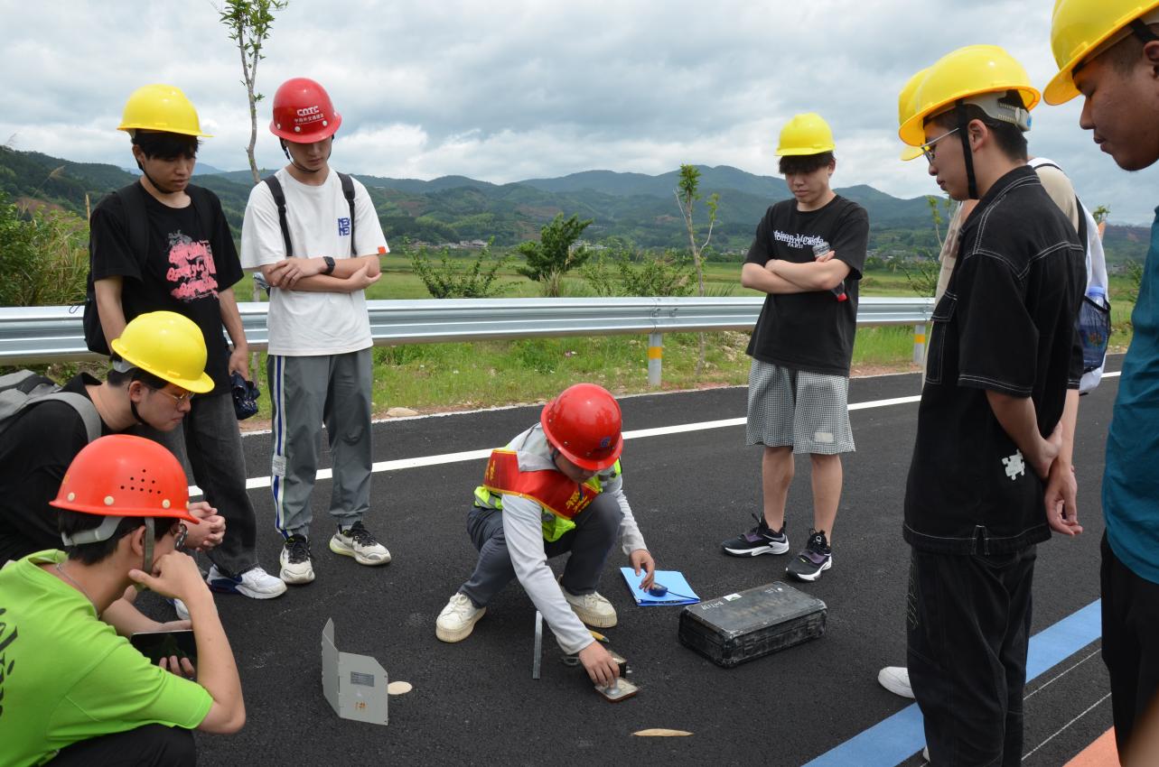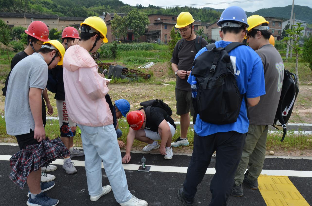在檢測(cè)行業(yè)專家和黨員教師的指導(dǎo)下,21道路與橋梁工程技術(shù)專業(yè)學(xué)生踴躍參與并依次完成了瀝青路面及其交通安全附屬設(shè)施現(xiàn)場(chǎng)檢測(cè)。瀝青路面現(xiàn)場(chǎng)檢測(cè)參數(shù)包括路面的壓實(shí)度、厚度、構(gòu)造深度、摩擦系數(shù),交通安全附屬設(shè)施現(xiàn)場(chǎng)檢測(cè)參數(shù)包括標(biāo)志標(biāo)線逆反射系數(shù)、標(biāo)線厚度、標(biāo)志基礎(chǔ)尺寸、立柱埋深及涂層厚度等。活動(dòng)中,專家們還向?qū)W生們?cè)敿?xì)講解了瀝青路面施工質(zhì)量動(dòng)態(tài)管理過程中質(zhì)量檢測(cè)內(nèi)容及技術(shù)標(biāo)準(zhǔn),并根據(jù)《公路瀝青路面施工技術(shù)規(guī)范》《公路工程質(zhì)量檢驗(yàn)評(píng)定標(biāo)準(zhǔn)》,指導(dǎo)學(xué)生分析現(xiàn)場(chǎng)檢測(cè)數(shù)據(jù)、評(píng)定路面施工質(zhì)量。