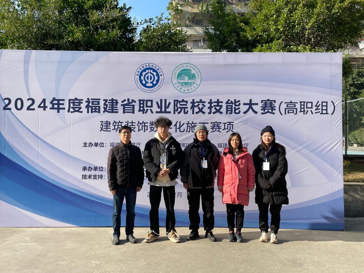 12月22日至24日, 2024年福建省職業(yè)院校技能大賽(高職組)建筑裝飾數(shù)字化施工賽項(xiàng)在泉州職業(yè)技術(shù)大學(xué)舉行。來自福建省職業(yè)院校的25支代表隊(duì),75名師生選手參賽同臺(tái)競(jìng)技。我校參賽隊(duì)伍由土木工程學(xué)院盧娜(教師)和葉浩錦(學(xué)生)、謝昊霖(學(xué)生)組成師生參賽團(tuán)隊(duì)。我院師生團(tuán)隊(duì)扎實(shí)奮戰(zhàn),榮獲省賽二等獎(jiǎng)。