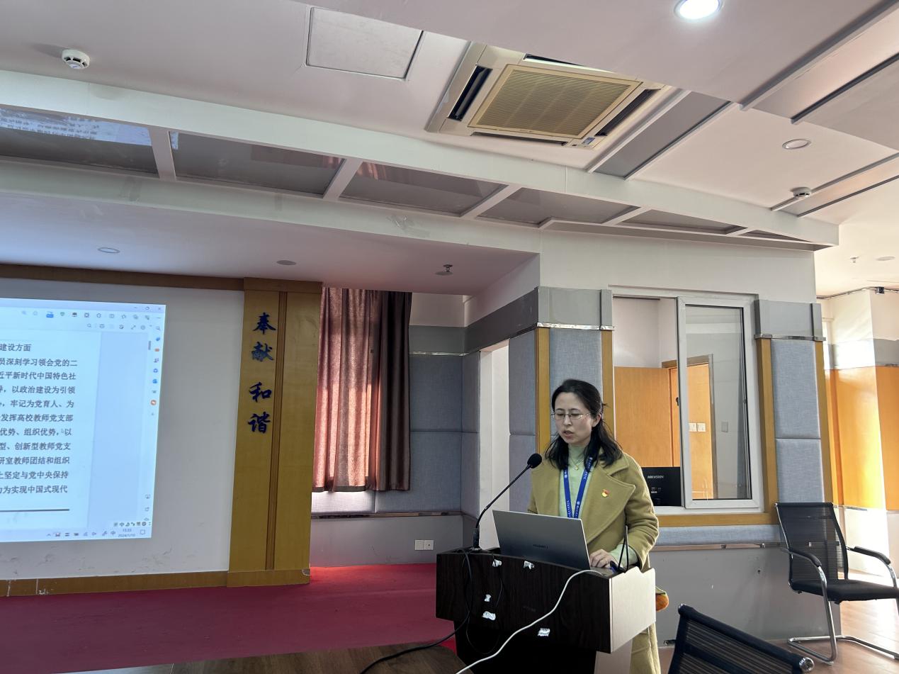 黨總支書記高杰同志對各支部述職情況進(jìn)行逐一點(diǎn)評。2024年是新中國成立75周年,是實(shí)現(xiàn)“十四五”規(guī)劃目標(biāo)任務(wù)的關(guān)鍵一年,就進(jìn)一步加強(qiáng)學(xué)院2024年基層黨建工作提出了三點(diǎn)要求:一是要加強(qiáng)思政引領(lǐng),系統(tǒng)抓好理論學(xué)習(xí),強(qiáng)化過程監(jiān)督。持續(xù)深入貫徹黨的二十大精神,推動學(xué)習(xí)貫徹習(xí)近平新時(shí)代中國特色社會主義思想主題教育成果轉(zhuǎn)化,堅(jiān)持用黨的創(chuàng)新理論指導(dǎo)實(shí)踐,以深化黨建工作效能為抓手,以強(qiáng)化基層基礎(chǔ)工作為依托,抓好《中國共產(chǎn)黨紀(jì)律處分條例》學(xué)習(xí)貫徹,堅(jiān)決捍衛(wèi)“兩個(gè)確立”,增強(qiáng)“四個(gè)意識”、堅(jiān)定“四個(gè)自信”、做到“兩個(gè)維護(hù)”。加強(qiáng)對黨建工作的監(jiān)督、檢查,確保各項(xiàng)措施落地見效。二是要激發(fā)黨建活力,大力推進(jìn)黨建品牌創(chuàng)建。突出服務(wù)中心,深化“一融雙優(yōu)”機(jī)制,推進(jìn)黨支部品牌創(chuàng)建,實(shí)現(xiàn)一支部一品牌。組織黨員立足主責(zé)主業(yè),緊扣目標(biāo)任務(wù),激發(fā)爭先熱情,增強(qiáng)創(chuàng)造活力,推動黨的建設(shè)和學(xué)院中心工作有機(jī)結(jié)合、深度融合。三是要夯實(shí)基礎(chǔ)抓示范,著力深化黨支部規(guī)范化建設(shè)。進(jìn)一步嚴(yán)格落實(shí)“第一議題”制度的要求,全力推進(jìn)國家樣板支部建設(shè),精心準(zhǔn)備驗(yàn)收工作;持續(xù)提升省級“雙帶頭人”工作室、省級樣板支部、學(xué)院黨建示范點(diǎn)的建設(shè)內(nèi)涵,爭創(chuàng)省級黨建標(biāo)桿院系。
