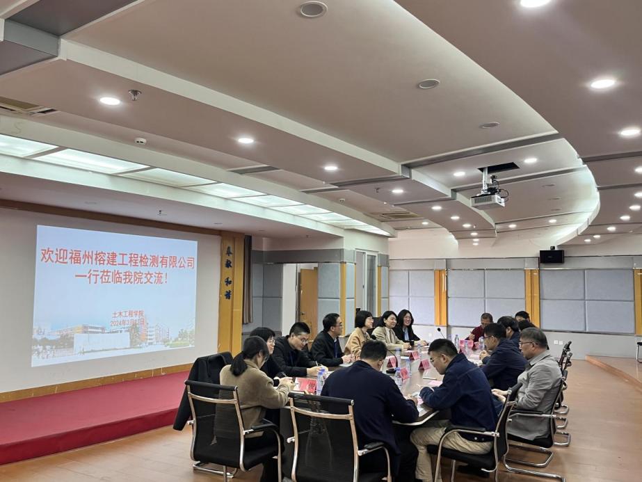 2024年3月27日,福州榕建工程檢測(cè)有限公司黨支部書記、執(zhí)行董事肖斯熔、總經(jīng)理張崇淼一行蒞臨我校土木工程學(xué)院,土木工程學(xué)院院長(zhǎng)黃穎陪同參觀交流。