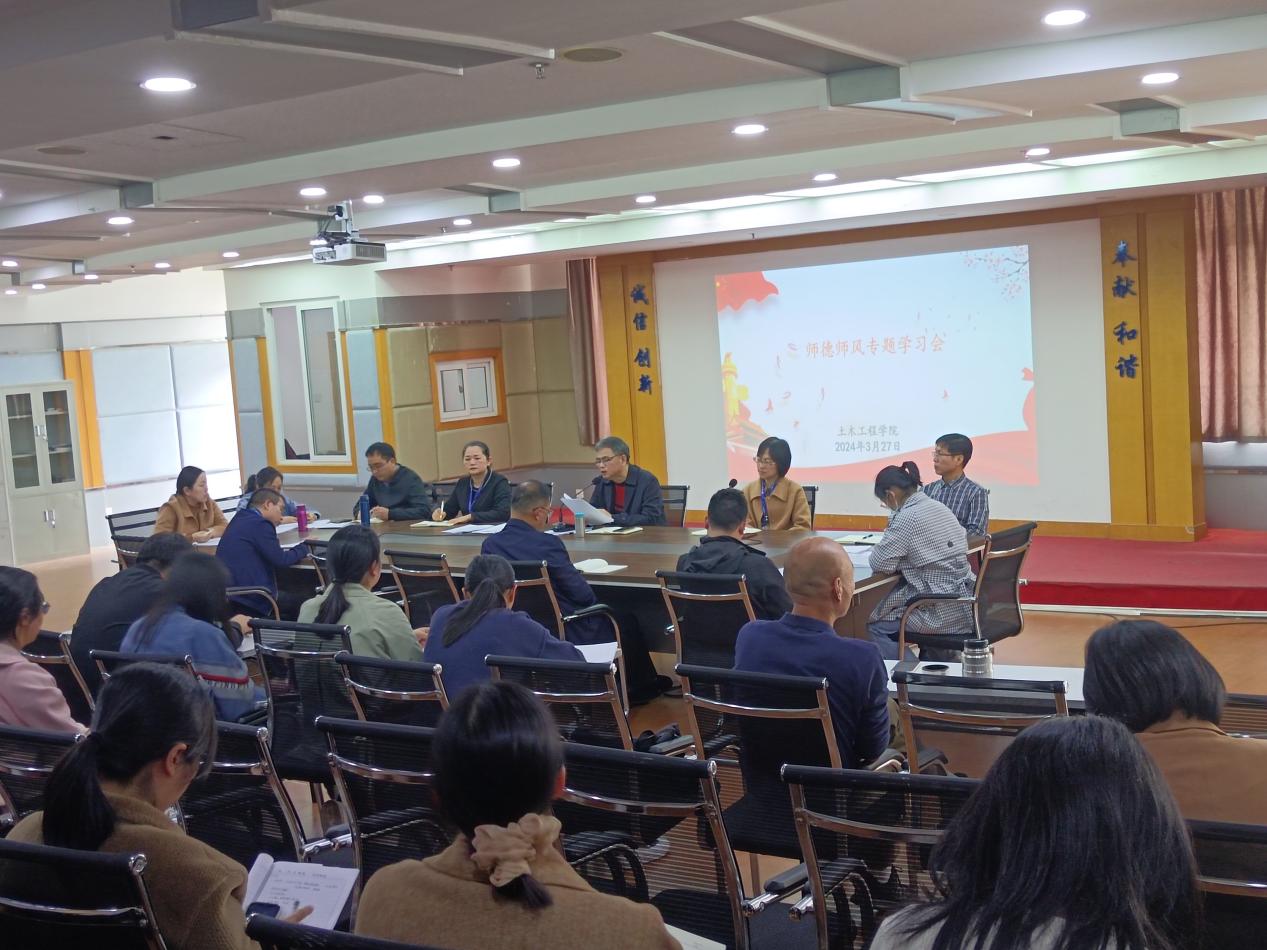 為進(jìn)一步加強(qiáng)師德師風(fēng)建設(shè),全面貫徹習(xí)近平總書記關(guān)于教育的重要論述和全國教育大會(huì)精神,提升廣大教職工的思想政治素養(yǎng)和師德師風(fēng)水平,3月27日下午,土木工程學(xué)院在創(chuàng)新樓1007召開師德師風(fēng)學(xué)習(xí)會(huì)。土木工程學(xué)院全體教職工參加本次會(huì)議。
