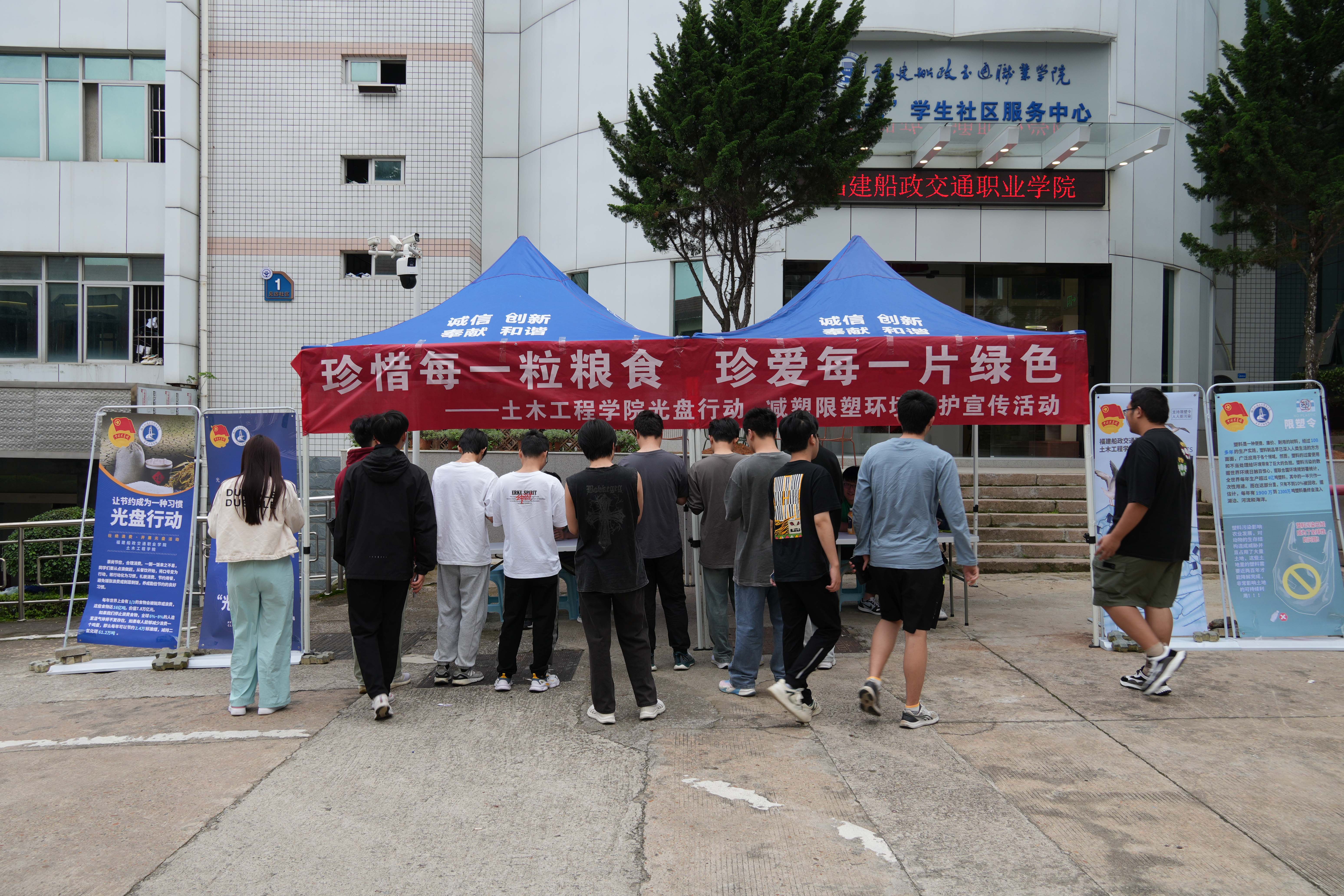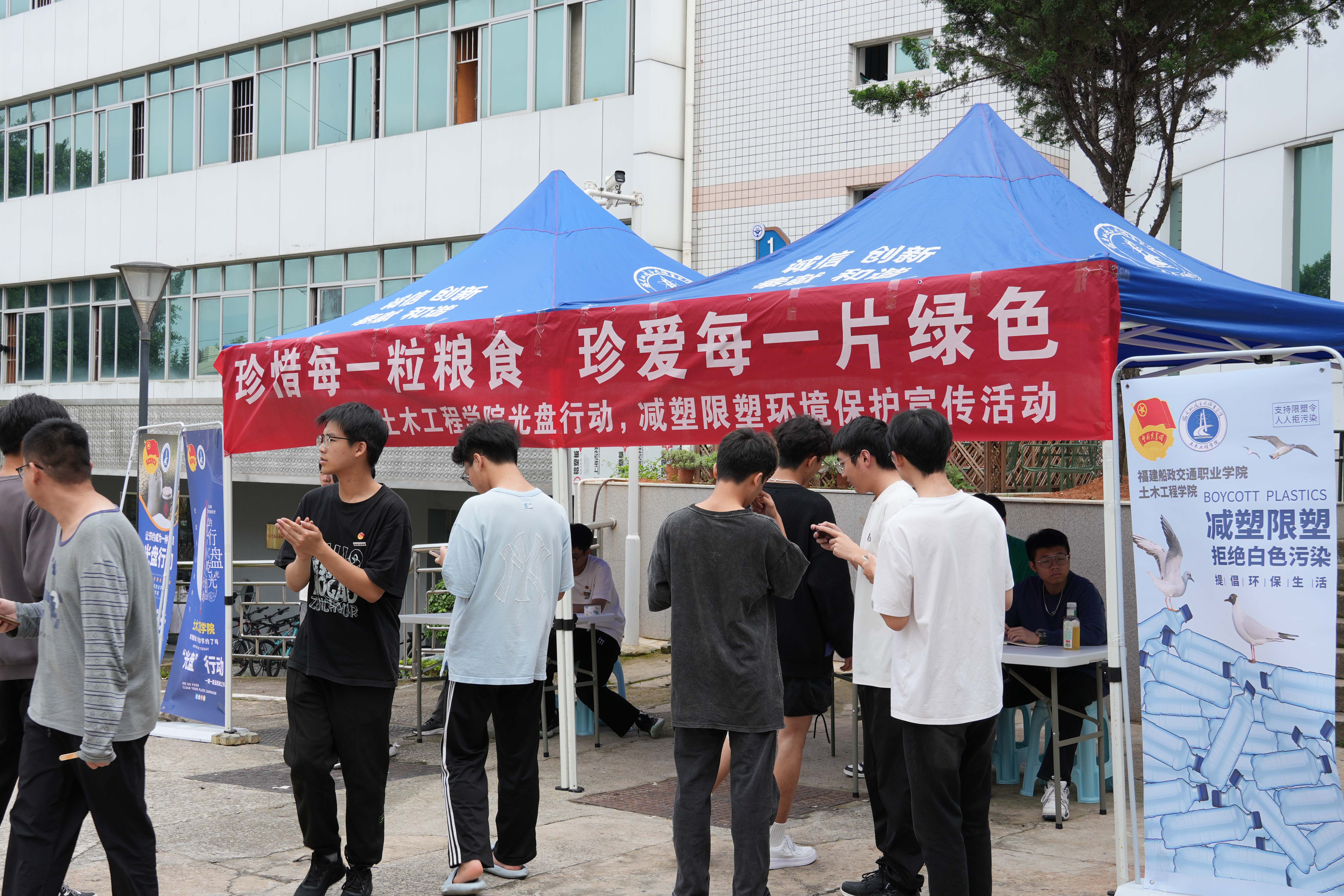 為發(fā)揚(yáng)中華民族勤儉節(jié)約、與自然和諧共生的傳統(tǒng)美德,響應(yīng)習(xí)近平總書記“綠水青山就是金山銀山”的號(hào)召,增強(qiáng)同學(xué)們節(jié)約糧食和保護(hù)環(huán)境意識(shí),引導(dǎo)同學(xué)們養(yǎng)成良好的行為習(xí)慣。2024年4月24日,土木工程學(xué)院在福航園“一站式”學(xué)生社區(qū)服務(wù)中心開展“光盤行動(dòng),‘塑’戰(zhàn)‘塑’決”宣傳活動(dòng)。