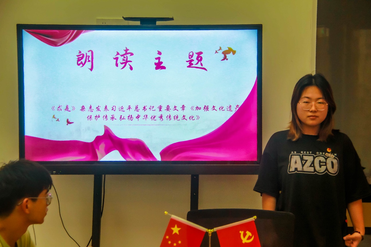 分享會(huì)上,2023級(jí)建設(shè)工程管理(3+2)2班王恬,領(lǐng)學(xué)朗讀了習(xí)近平總書(shū)記在《求是》雜志發(fā)表的重要文章《加強(qiáng)文化遺產(chǎn)保護(hù)傳承 弘揚(yáng)中華優(yōu)秀傳統(tǒng)文化》。