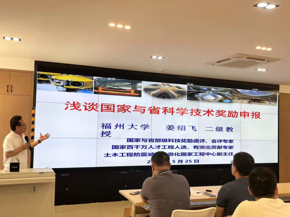 活動邀請了福州大學(xué)土木工程學(xué)院姜紹飛教授作主題講座。姜紹飛教授是國家百千萬人才工程人選、國家有突出貢獻(xiàn)中青年專家和國務(wù)院政府特殊津貼專家,并多次獲得省部級科技獎。講座以“淺談國家與省科學(xué)技術(shù)獎勵申報(bào)”為題,從國家級及省級科學(xué)獎勵設(shè)置、各類獎項(xiàng)申報(bào)要點(diǎn)、獎項(xiàng)提名書撰寫方法等幾方面,為參會的博士教師們作了精彩報(bào)告,大家紛紛表示受益匪淺。