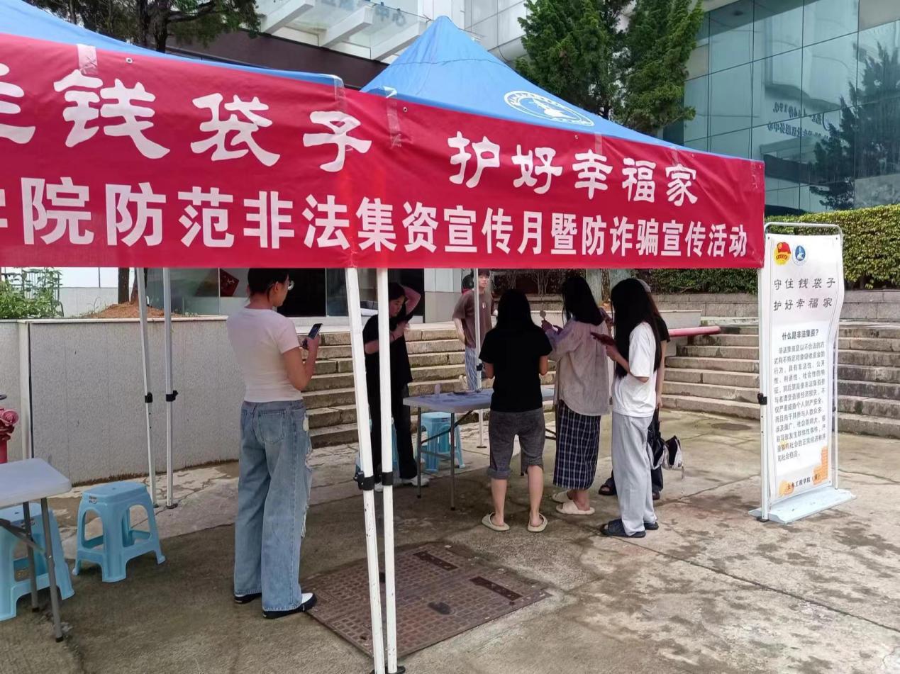 為提高學(xué)生對非法集資危害的認(rèn)識,進(jìn)一步普及金融知識,增強(qiáng)自我保護(hù)意識,引導(dǎo)學(xué)生自覺遠(yuǎn)離和抵制非法集資。2024年6月15日,土木工程學(xué)院于福航園“一站式”學(xué)生社區(qū)服務(wù)中心開展“守住錢袋子、護(hù)好幸福家”防范非法集資宣傳月暨防詐騙宣傳活動(dòng)。