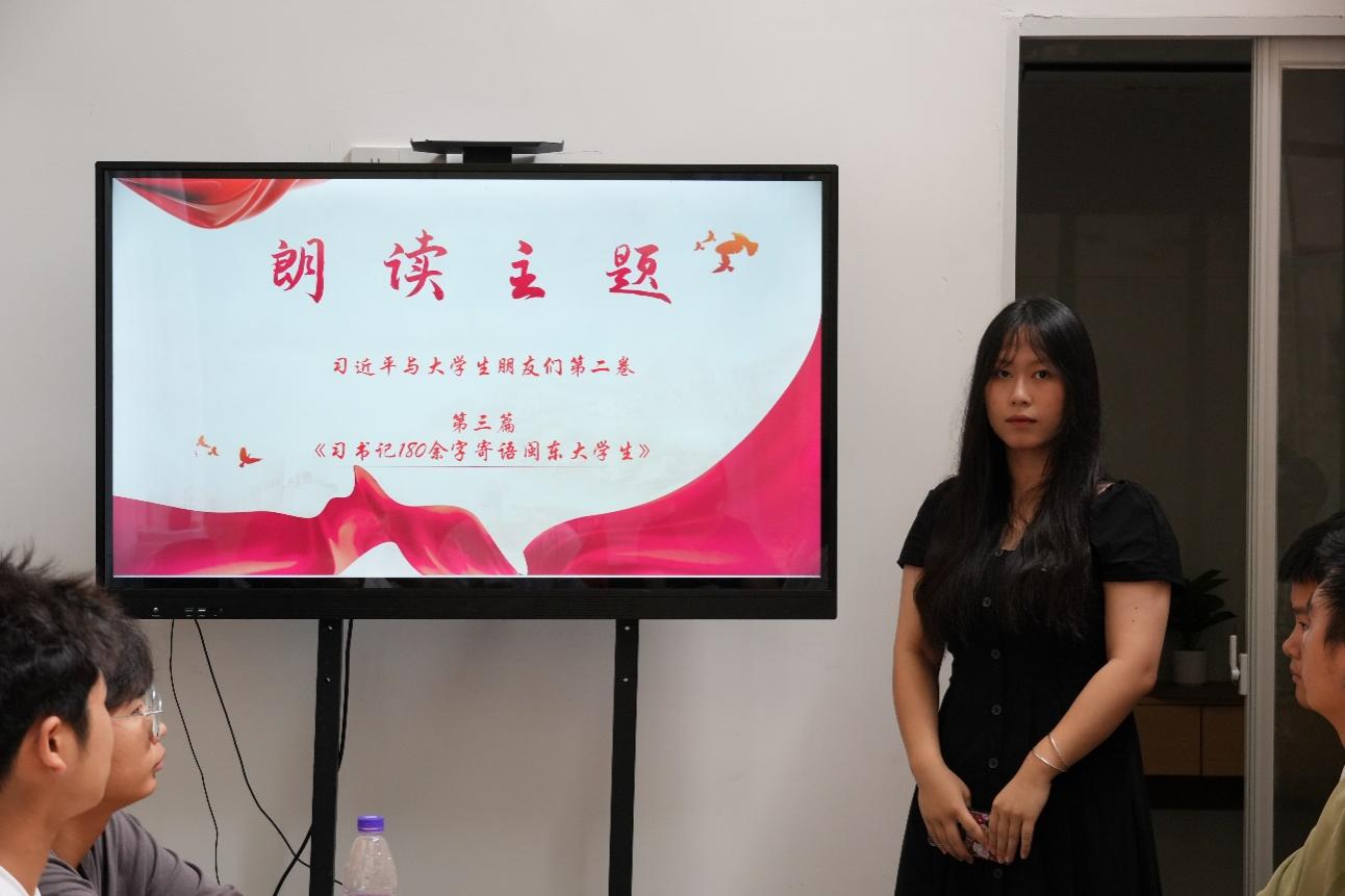 分享會(huì)上,2023級(jí)市政工程技術(shù)2班團(tuán)支書許琳,領(lǐng)學(xué)朗讀了,《習(xí)近平與大學(xué)生朋友們》第二卷第三篇《習(xí)書記180余字寄語閩東大學(xué)生》,從中深切地感受到了習(xí)近平總書記對(duì)于基層工作的極度關(guān)注以及他對(duì)年輕學(xué)生們的深深關(guān)懷。