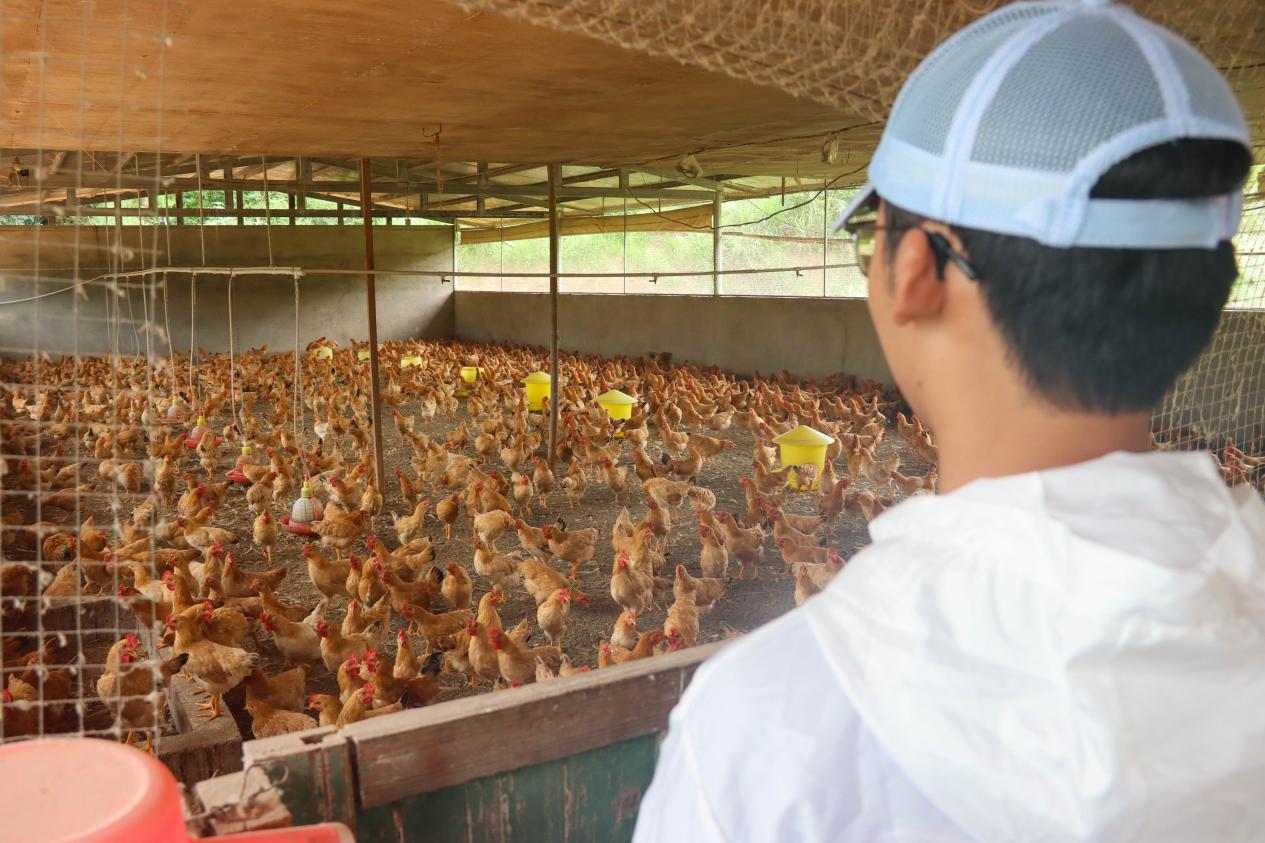 河田雞是“世界五大名雞”之一,是中國(guó)國(guó)家地理標(biāo)志產(chǎn)品,河田雞養(yǎng)殖成為當(dāng)?shù)剜l(xiāng)村振興的重要產(chǎn)業(yè)。頂著烈日、冒著酷暑,實(shí)踐隊(duì)來到了長(zhǎng)汀縣河田鎮(zhèn)蘆竹村蘭秀家庭農(nóng)場(chǎng)。雞場(chǎng)負(fù)責(zé)人帶領(lǐng)考察隊(duì)員們參觀了雞蛋溫室孵化、雛雞養(yǎng)殖、河田雞交配繁殖等相關(guān)基地,并向考察隊(duì)員們介紹了蘭秀養(yǎng)雞場(chǎng)從廢棄礦場(chǎng)到河田雞天堂的轉(zhuǎn)變過程。