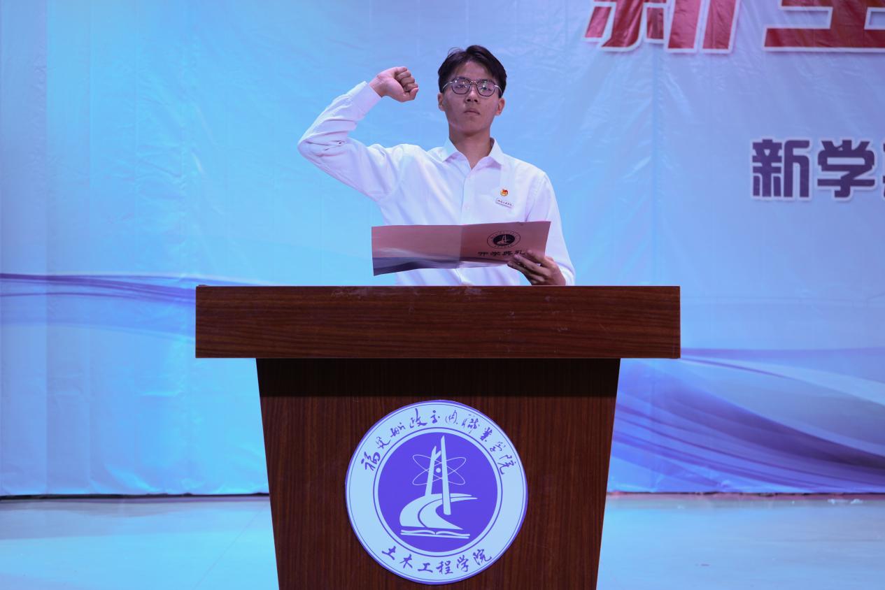 在許加聰同學(xué)的帶領(lǐng)下,全體2024級(jí)新生莊嚴(yán)宣誓: