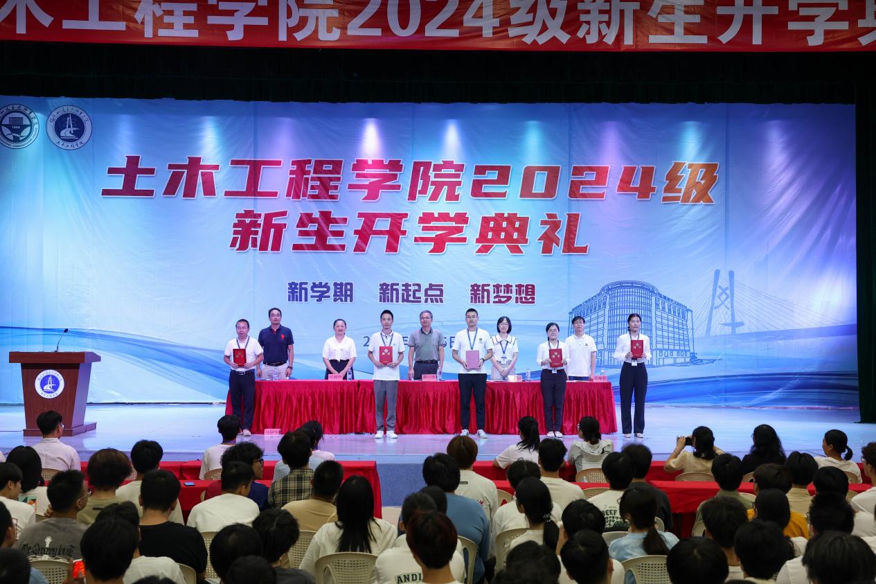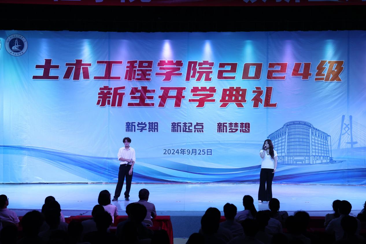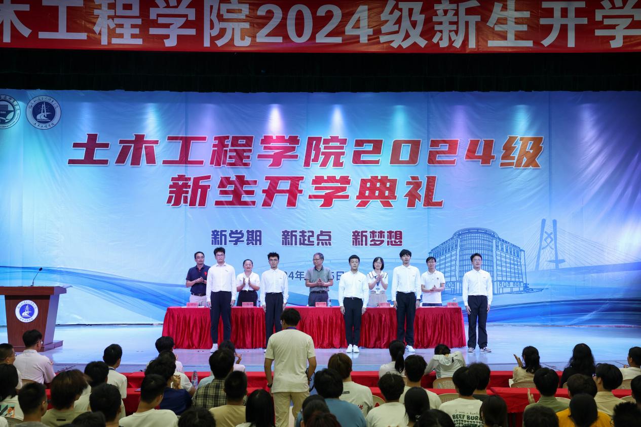 秋光為序,筑夢(mèng)起航。9月25日晚上,土木工程學(xué)院在福道園文體中心隆重舉行2024級(jí)新生開(kāi)學(xué)典禮。出席此次典禮的有學(xué)院黨總支書(shū)記高杰教授、院長(zhǎng)黃穎博士、黨總支副書(shū)記任穎卿、副院長(zhǎng)朱明栓、副院長(zhǎng)卓維松,學(xué)院2024級(jí)輔導(dǎo)員、班主任,教師代表、助教以及2024級(jí)全體同學(xué)。此次大會(huì)由任穎卿副書(shū)記主持。
