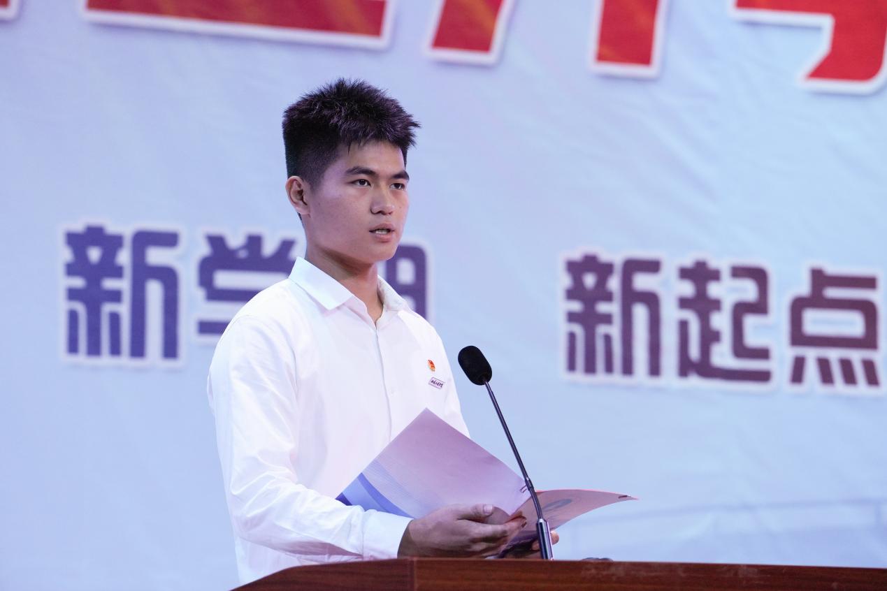 袁文豪老師作為新生班主任代表發(fā)言,他激勵(lì)新生們恪守品德準(zhǔn)繩,主動(dòng)履行社會(huì)責(zé)任,嚴(yán)格遵守學(xué)校規(guī)定;以求真務(wù)實(shí)態(tài)度對(duì)待學(xué)業(yè),嚴(yán)謹(jǐn)治學(xué);著力掌握專業(yè)知識(shí),拓寬視野,培養(yǎng)多元化興趣及技能。