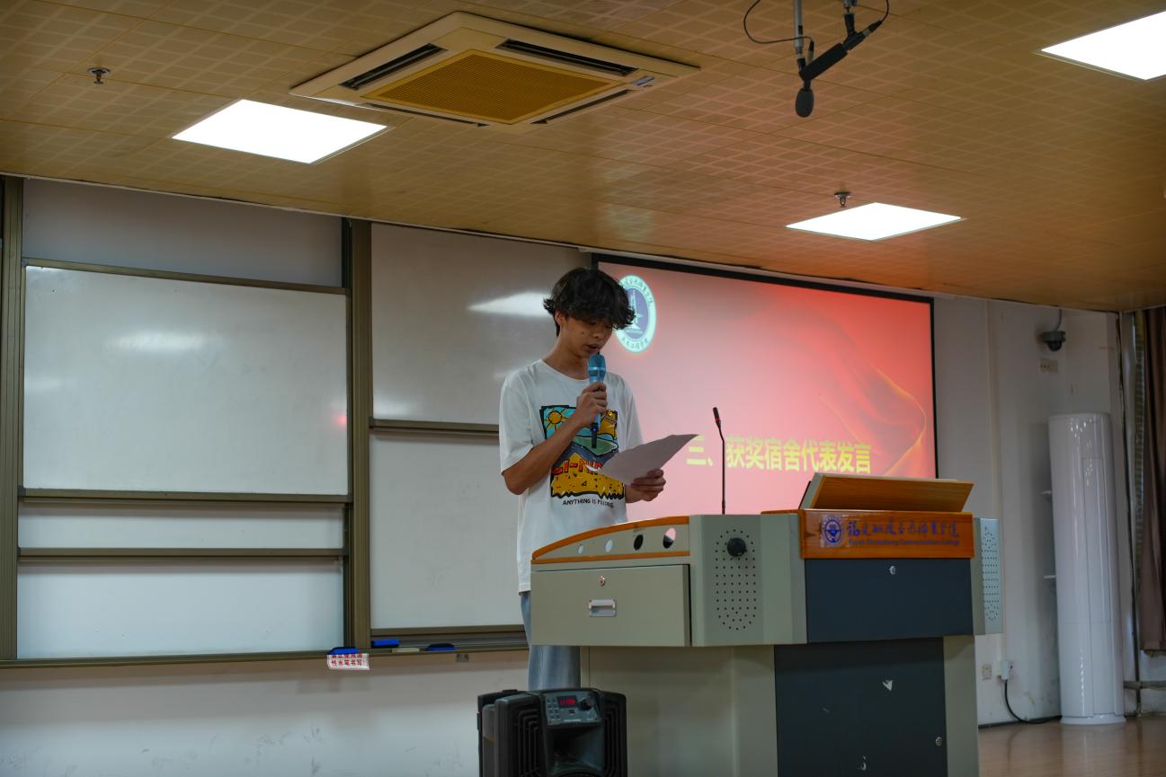 本次評比共有30間學(xué)生宿舍經(jīng)過日常檢查和隨機抽查,最終榮獲文明宿舍稱號。這些獲獎宿舍環(huán)境清雅明凈,室友關(guān)系和睦。獲獎宿舍長代表林星彤同學(xué)向大家分享在日常生活中如何和室友一起構(gòu)建“家庭宿舍”,齊心協(xié)力、共同進步。