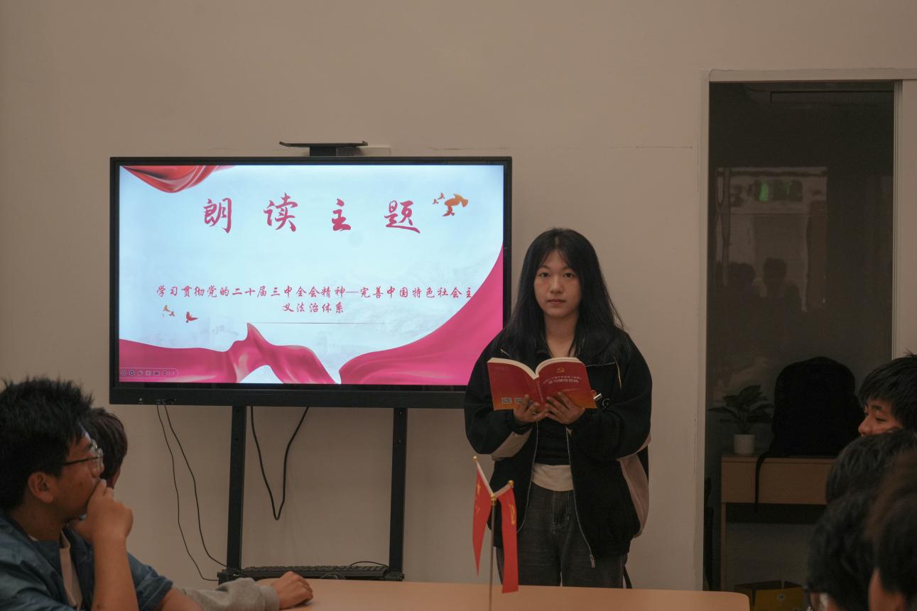 分享會(huì)上,2024級道路與橋梁工程技術(shù)3班學(xué)習(xí)委員陳雯,土木工程學(xué)院兩委辦成員,領(lǐng)學(xué)朗讀了《中共中央關(guān)于進(jìn)一步全面深化改革、推進(jìn)中國式現(xiàn)代化的決定》(后文簡稱《決定》)“完善中國特色社會(huì)主義法治體系”部分。