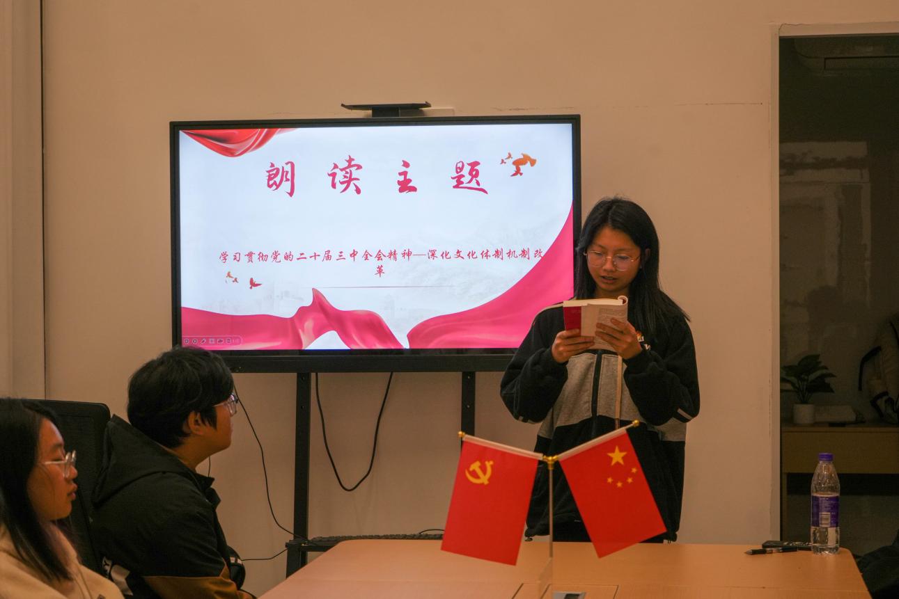 分享會(huì)上,2024級(jí)測繪地理信息技術(shù)1班權(quán)益委員許夢(mèng)瀅,領(lǐng)學(xué)朗讀了《中共中央關(guān)于進(jìn)一步全面深化改革、推進(jìn)中國式現(xiàn)代化的決定》(后文簡稱《決定》)“深化文化體制機(jī)制改革”部分。