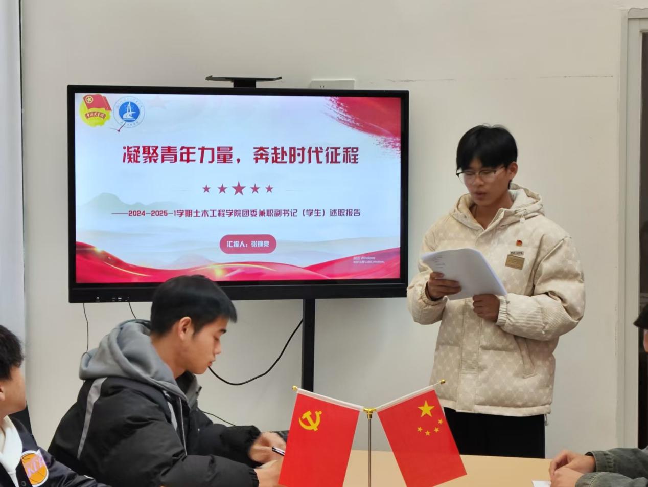 為加強(qiáng)團(tuán)學(xué)組織工作制度化、規(guī)范化、系統(tǒng)化,提高學(xué)生干部的服務(wù)能力,發(fā)揮團(tuán)學(xué)組織聯(lián)系廣大同學(xué)的橋梁和紐帶作用,總結(jié)工作成果、反思工作不足、提高工作效率、增強(qiáng)團(tuán)隊(duì)凝聚力。2024年12月26日,土木工程學(xué)院團(tuán)委于福航園“一站式”學(xué)生社區(qū)召開2024年下半年團(tuán)委、學(xué)生會述職評議會。學(xué)院團(tuán)委老師,團(tuán)委、學(xué)生會學(xué)生干部參加了會議。