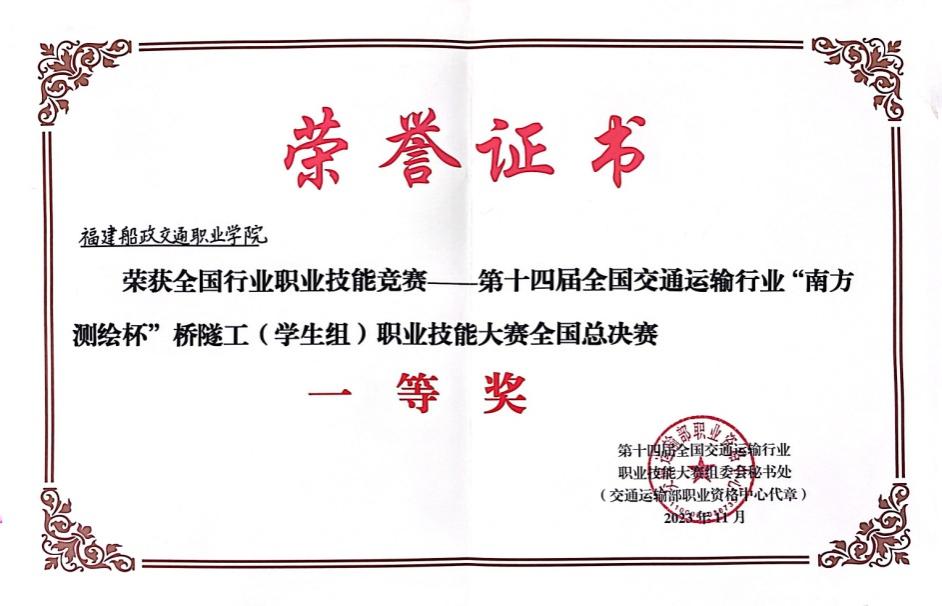 獲全國交通運輸行業(yè)橋隧工職業(yè)技能大賽一等獎