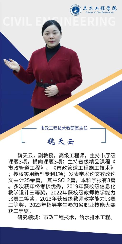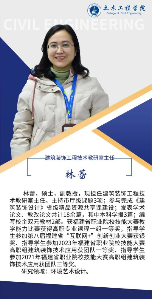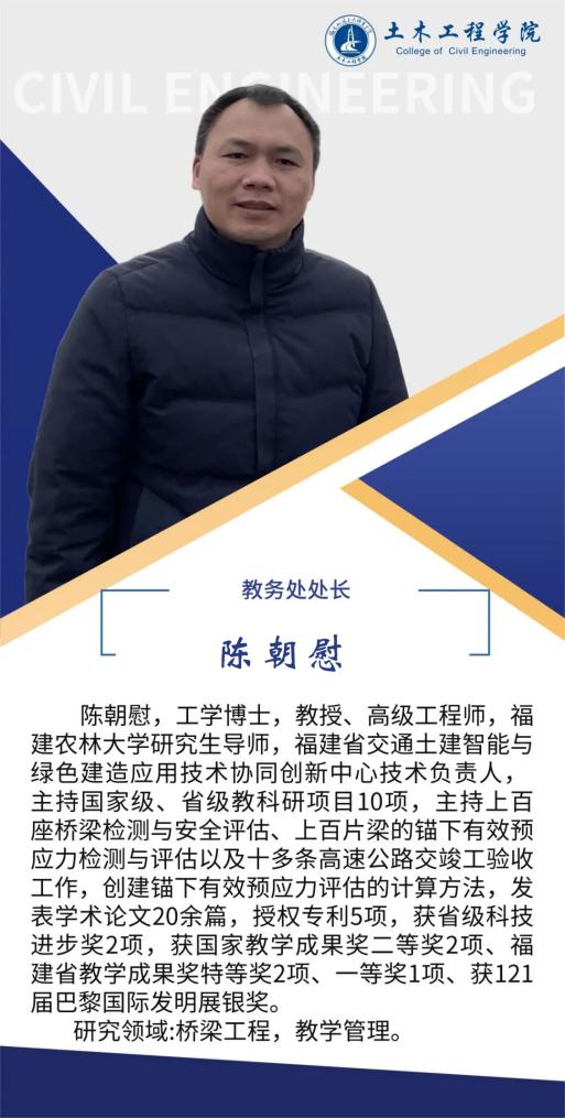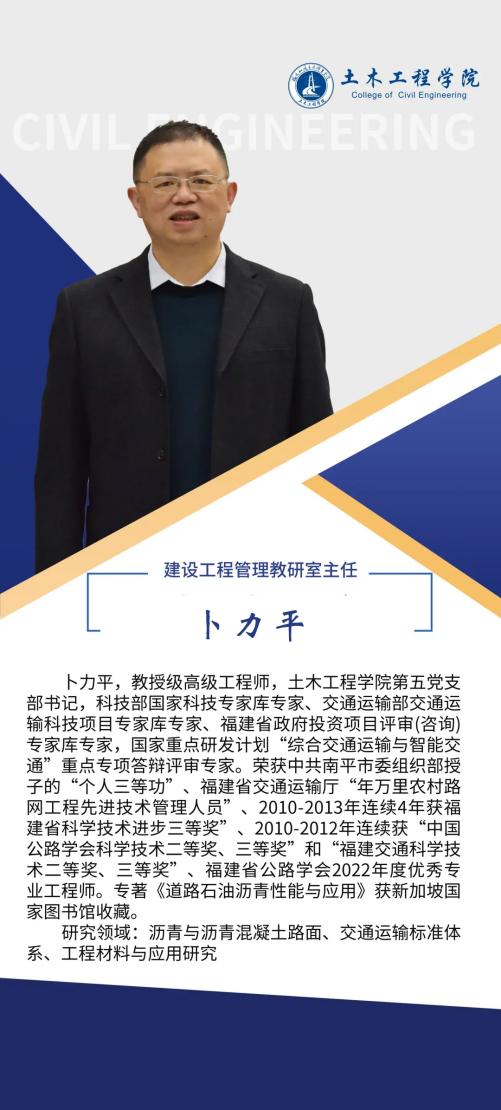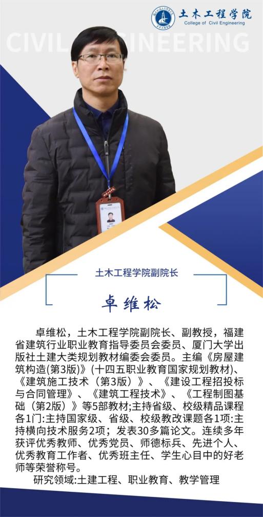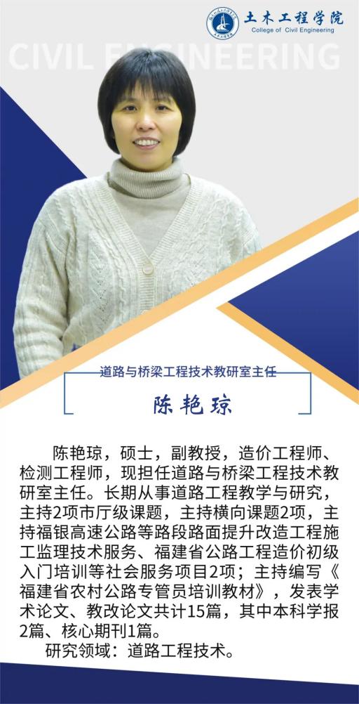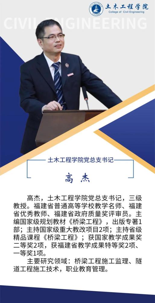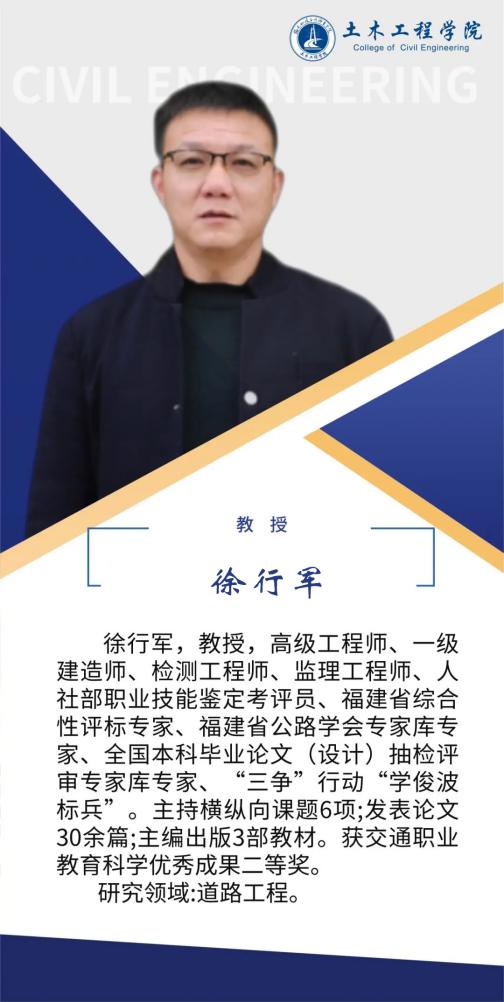 堅持黨建引領(lǐng),扎實推進(jìn)師資隊伍建設(shè),土木工程學(xué)院黨總支是全省先進(jìn)基層黨組織,第二支部為省級樣板支部,第四黨支部為省“雙帶頭人”教師黨支部書記工作室、全國黨建工作樣板支部,2024年入選全國高?!半p帶頭人”教師黨支部書記“強國行”專項行動團(tuán)隊。土木工程學(xué)院現(xiàn)有專任教師90人,其中教授10人,副教授等副高職稱教師48人,具有博士學(xué)位教師10人,省級教學(xué)名師1人,省優(yōu)秀教師3人,省高職高專專業(yè)帶頭人1人,專任教師中具備雙師素質(zhì)的達(dá)到95%以上。另有一批專業(yè)領(lǐng)軍人才、大師名匠等組成的兼職教師隊伍,形成了高水平的“雙師雙能”教學(xué)團(tuán)隊。在先進(jìn)基層黨組織示范帶動下,道路與橋梁工程技術(shù)專業(yè)教學(xué)創(chuàng)新團(tuán)隊入選第三批國家級職業(yè)教育教師創(chuàng)新團(tuán)隊,團(tuán)隊成員參與獲得國家級教學(xué)成果二等獎2項,福建省教學(xué)成果特等獎1項,一等獎3項,教師參加省級以上教學(xué)能力比賽獲一等獎3項,二等獎5項。
