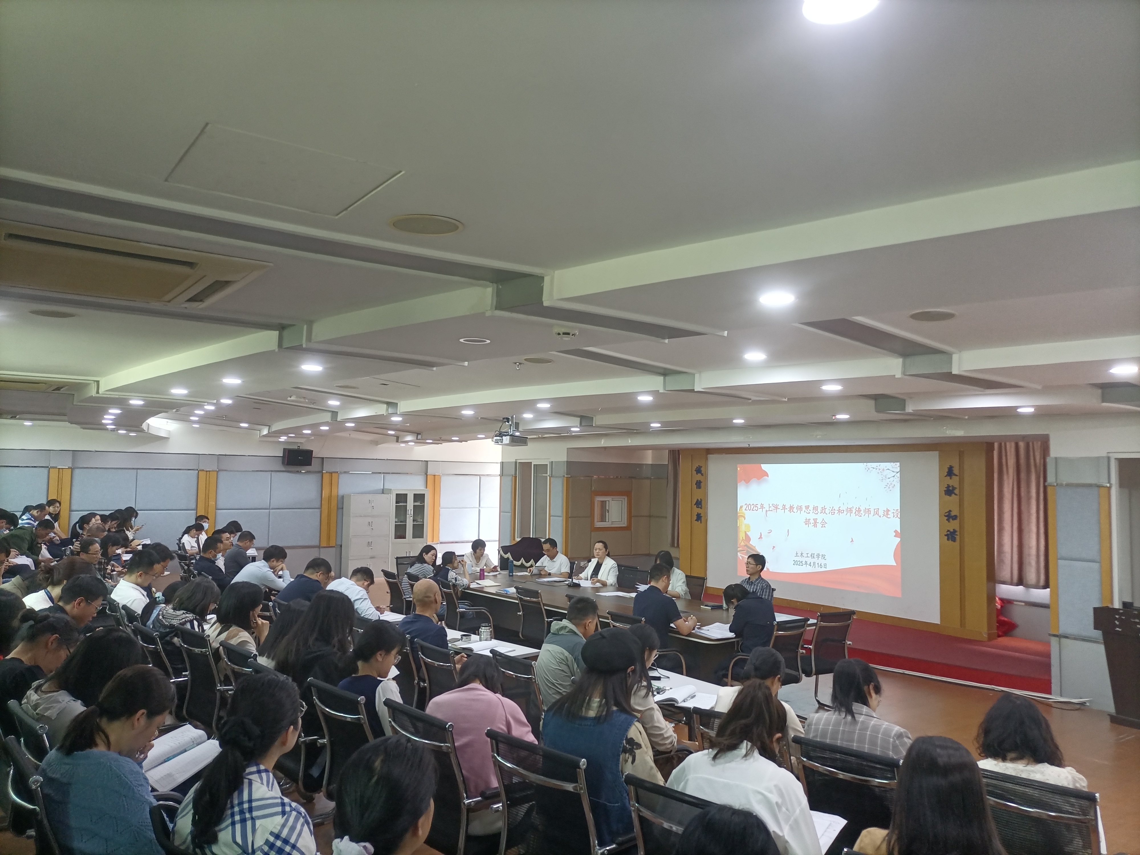 為深入學(xué)習(xí)貫徹習(xí)近平總書記關(guān)于教育的重要論述和全國教育大會精神,貫徹落實(shí)《教育強(qiáng)國建設(shè)規(guī)劃綱要(2024—2035年)》《中共中央國務(wù)院關(guān)于弘揚(yáng)教育家精神加強(qiáng)新時代高素質(zhì)專業(yè)化教師隊(duì)伍建設(shè)的意見》工作要求,全面推動學(xué)院師德師風(fēng)建設(shè)工作落到實(shí)處、取得實(shí)效,4月16日下午,土木工程學(xué)院在創(chuàng)新樓1007召開了2025年上半年教師思想政治和師德師風(fēng)建設(shè)部署會。土木工程學(xué)院班子成員、全體教職工參加會議。