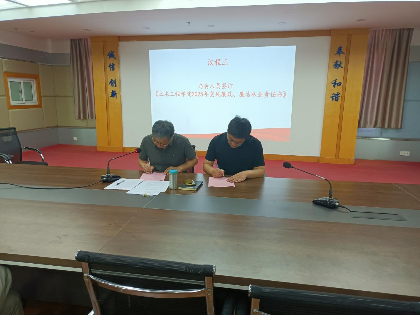 黨總支書記高杰同志并代表黨總支與與會人員簽訂2025年黨風(fēng)廉政、廉潔從業(yè)責(zé)任書,黨政負(fù)責(zé)人對與會人員進(jìn)行了集體廉政談話和“一對一”個(gè)別談話。