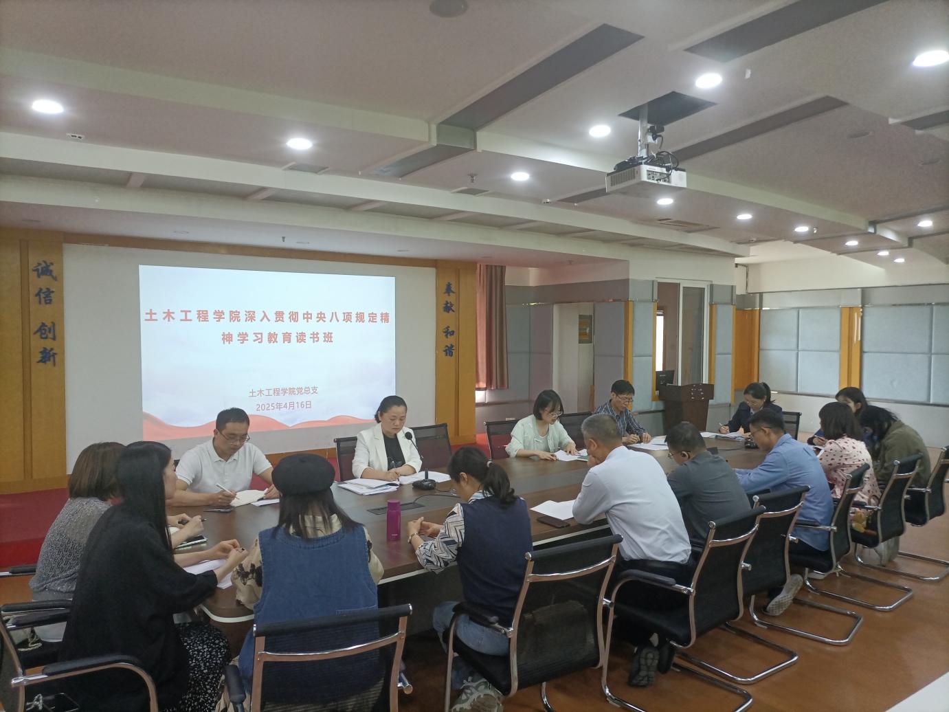4月16日,土木工程學(xué)院黨總支在創(chuàng)新樓1007舉辦深入貫徹中央八項規(guī)定精神學(xué)習(xí)教育讀書班暨理論學(xué)習(xí)中心組集體學(xué)習(xí)會,深入學(xué)習(xí)貫徹習(xí)近平總書記關(guān)于加強(qiáng)黨的作風(fēng)建設(shè)的重要論述和中央八項規(guī)定及其實施細(xì)則精神。學(xué)院黨總支理論學(xué)習(xí)中心組成員、支部書記、副書記、實訓(xùn)中心負(fù)責(zé)人參加會議,會議由黨總支書記副書記任穎卿主持。