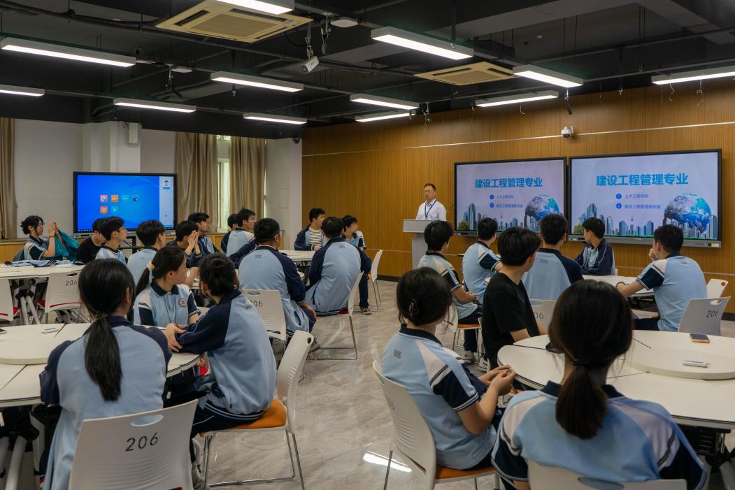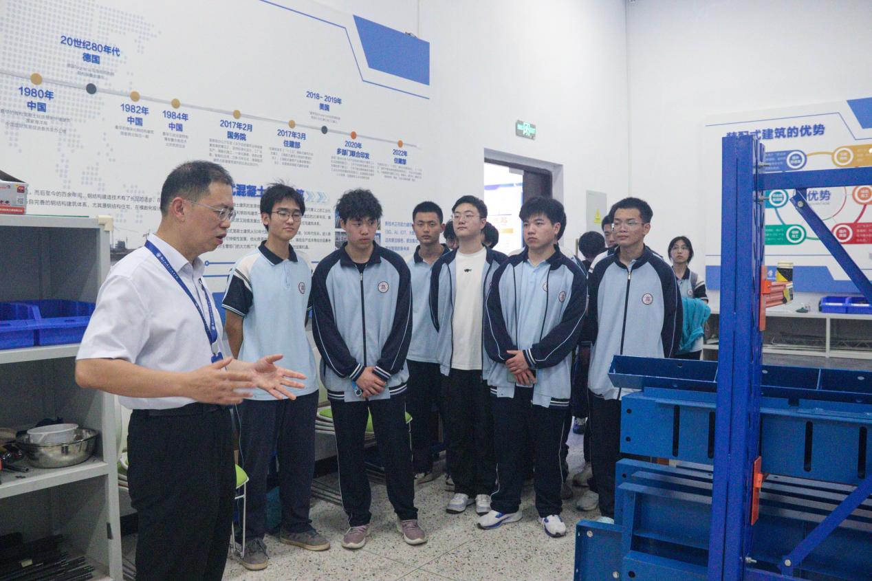 隨后,來訪師生分組參觀了常規(guī)/精密工程測量實訓(xùn)基地、建設(shè)工程虛實結(jié)合實景教學(xué)實訓(xùn)基地、智慧檢測基地及裝配式實訓(xùn)基地等特色實訓(xùn)場所。實訓(xùn)指導(dǎo)老師通過現(xiàn)場演示和生動講解,向?qū)W生們展示了先進的實訓(xùn)設(shè)備和實驗儀器。學(xué)生們通過沉浸式體驗,對土木工程領(lǐng)域的專業(yè)技能產(chǎn)生了濃厚興趣,對未來職業(yè)發(fā)展充滿憧憬。