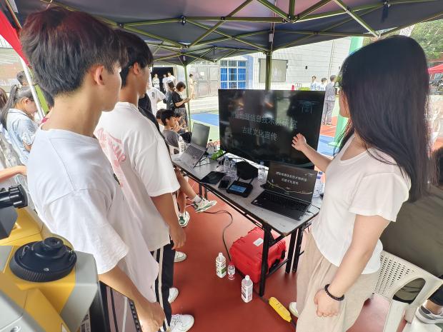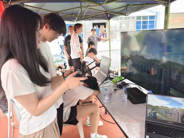 活動現(xiàn)場設(shè)置無人機(jī)測繪技術(shù)仿真體驗區(qū),通過虛擬仿真系統(tǒng)與實景設(shè)備聯(lián)動,直觀展示無人機(jī)傾斜攝影、三維建模等核心技術(shù)在古建數(shù)字化保護(hù)中的應(yīng)用場景。師生們親身體驗了從數(shù)據(jù)采集、點云處理到模型構(gòu)建的全流程操作,深入了解“空地一體建模技術(shù)”如何實現(xiàn)古建結(jié)構(gòu)的毫米級還原。測繪地理信息技術(shù)雙創(chuàng)團(tuán)隊現(xiàn)場分享了基于現(xiàn)場工程師項目開展的古建三維數(shù)據(jù)采集的實戰(zhàn)經(jīng)驗,生動展現(xiàn)了“技術(shù)賦能文化遺產(chǎn)保護(hù)”的創(chuàng)新路徑,構(gòu)建“真崗實練”培養(yǎng)模式。