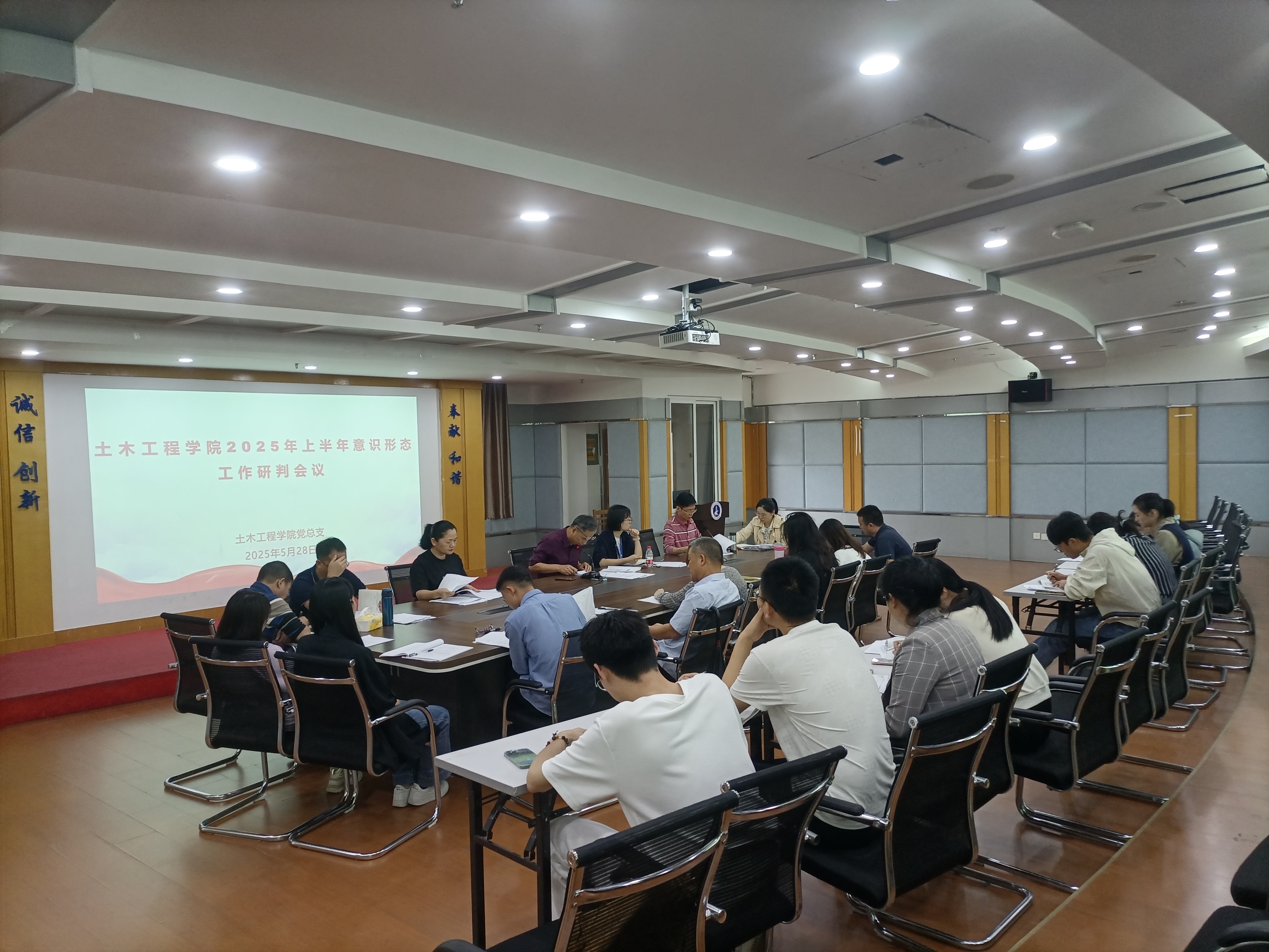 為深入貫徹習(xí)近平總書(shū)記關(guān)于意識(shí)形態(tài)工作的重要講話(huà)精神,切實(shí)把握我院意識(shí)形態(tài)領(lǐng)域出現(xiàn)的新情況、新問(wèn)題,確保意識(shí)形態(tài)領(lǐng)域安全可控,2025年5月28日,土木工程學(xué)院在創(chuàng)新樓1007召開(kāi)2025年上半年意識(shí)形態(tài)研判會(huì),意識(shí)形態(tài)工作領(lǐng)導(dǎo)小組成員、全體輔導(dǎo)員參加,會(huì)議由土木工程學(xué)院黨總支書(shū)記高杰同志主持。