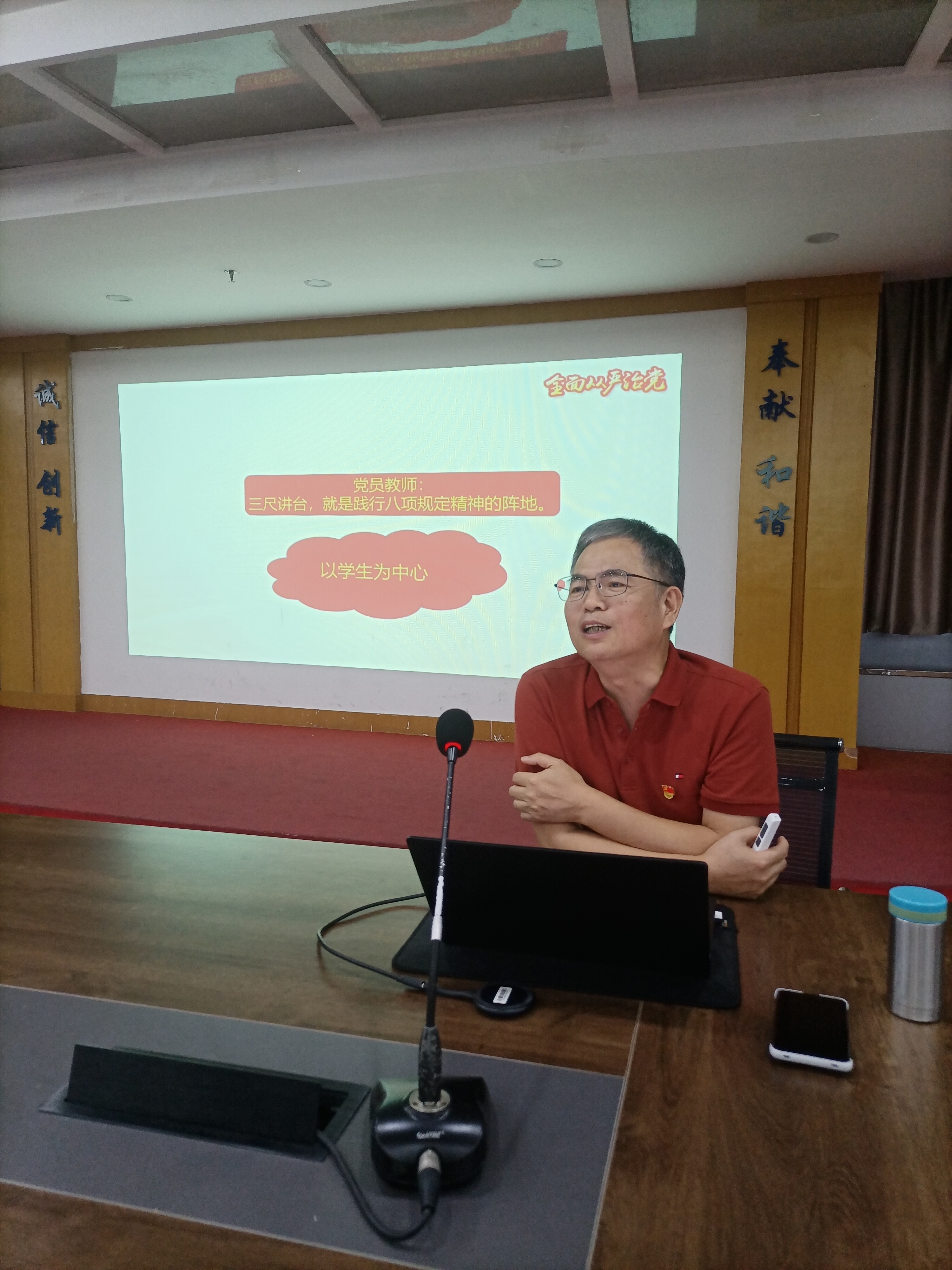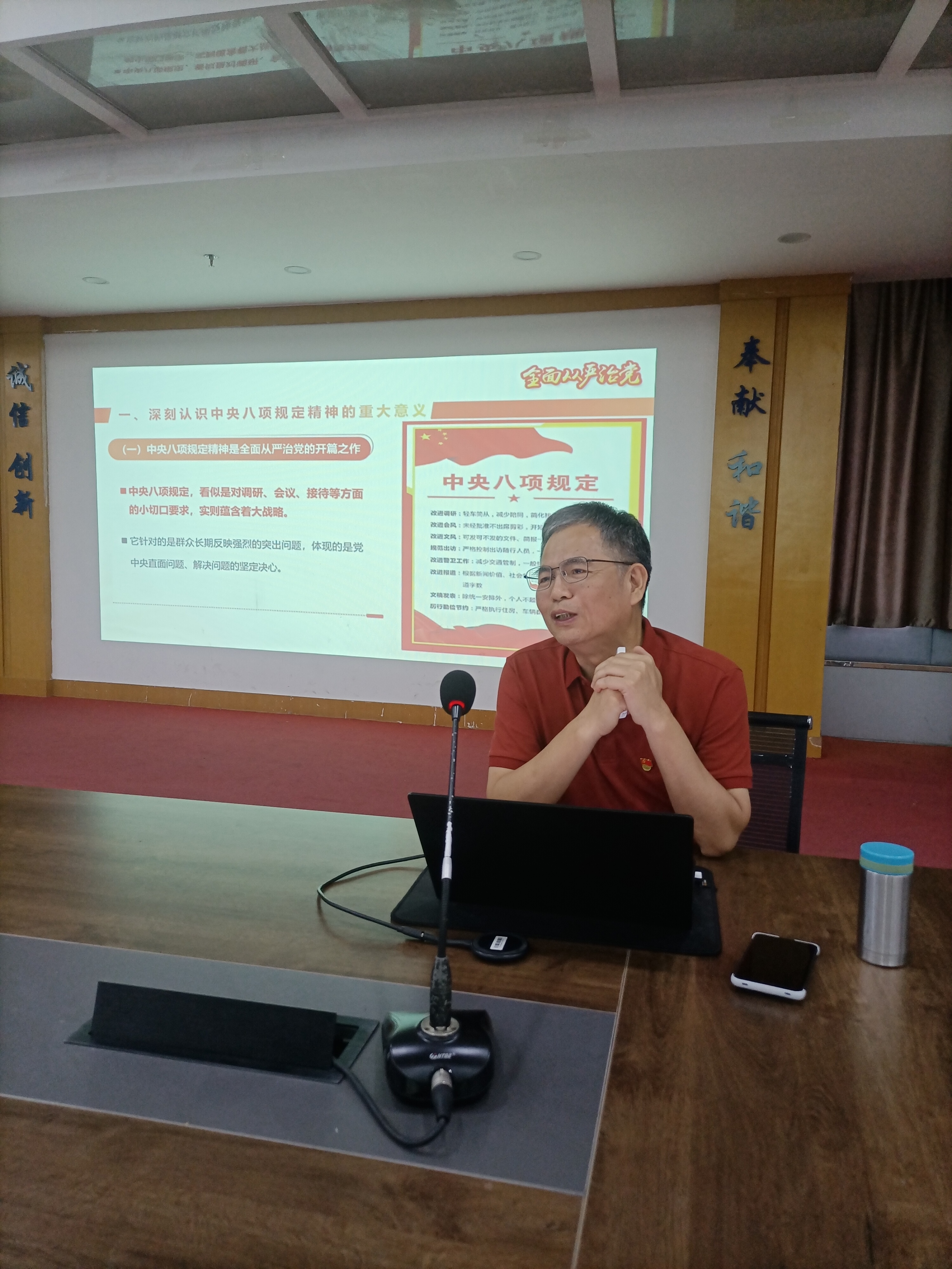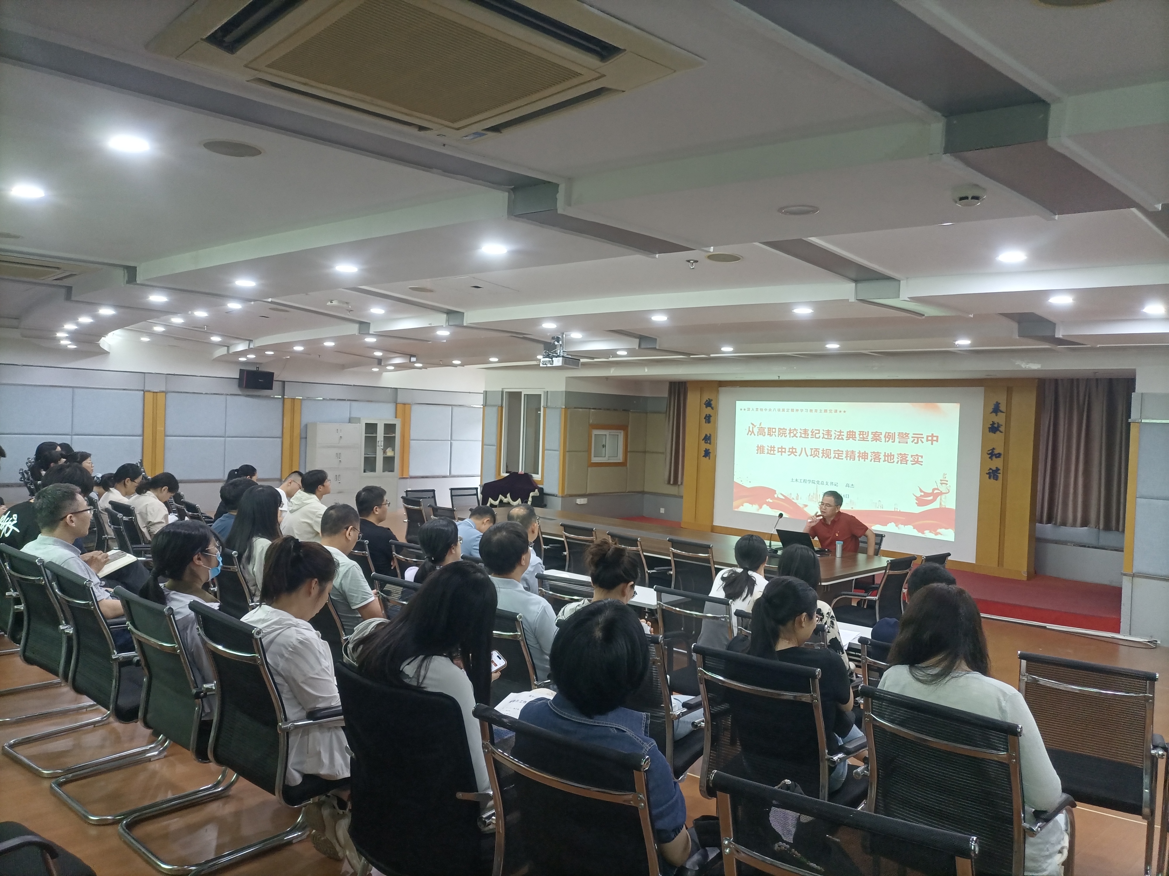 6月4日,學院黨總支書記高杰同志以《從高職院校違紀違法典型案例警示中推進中央八項規(guī)定精神落地落實》為題,講授深入貫徹中央八項規(guī)定精神學習教育專題黨課,土木工程學院全體黨員參加。
