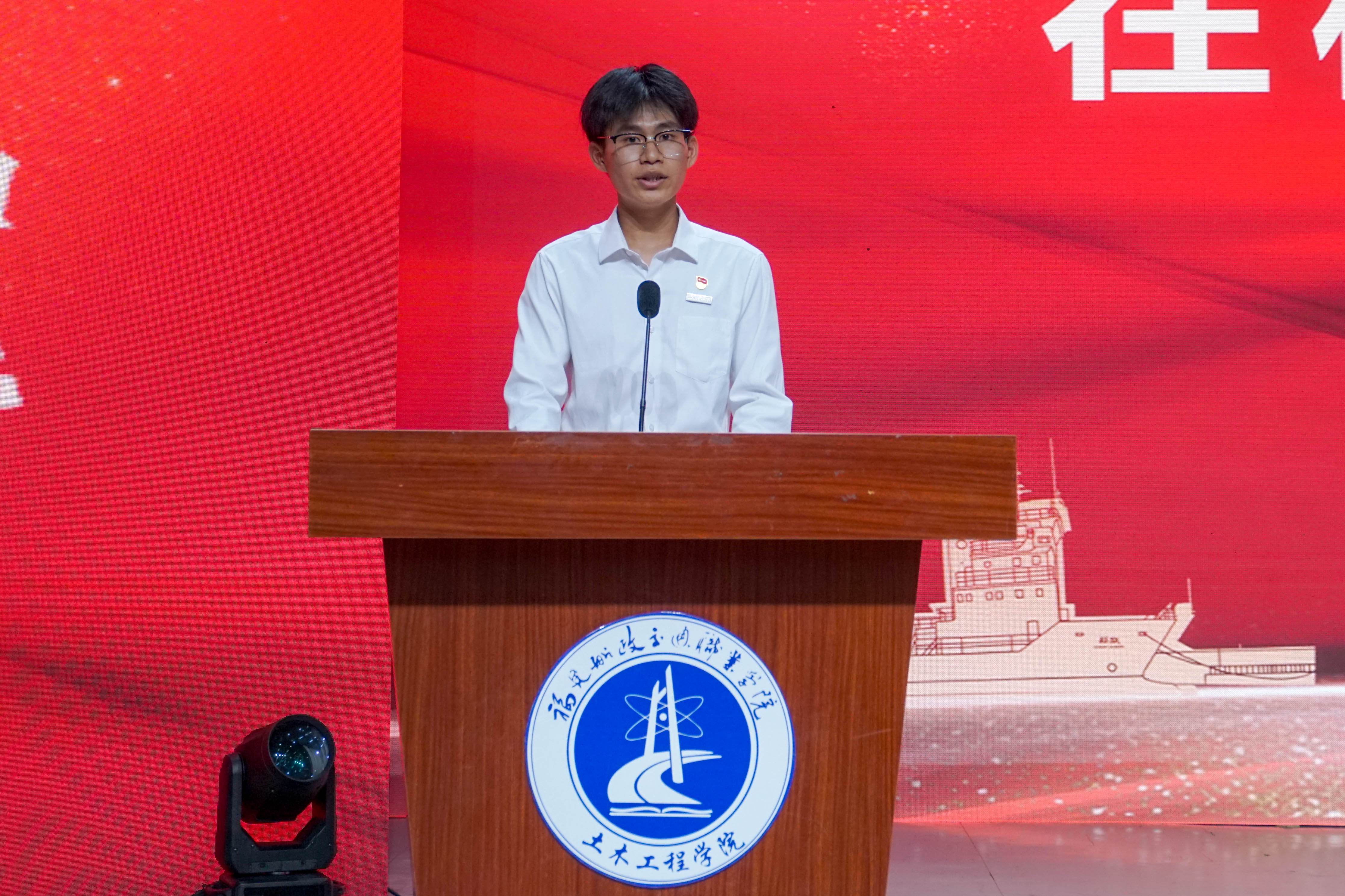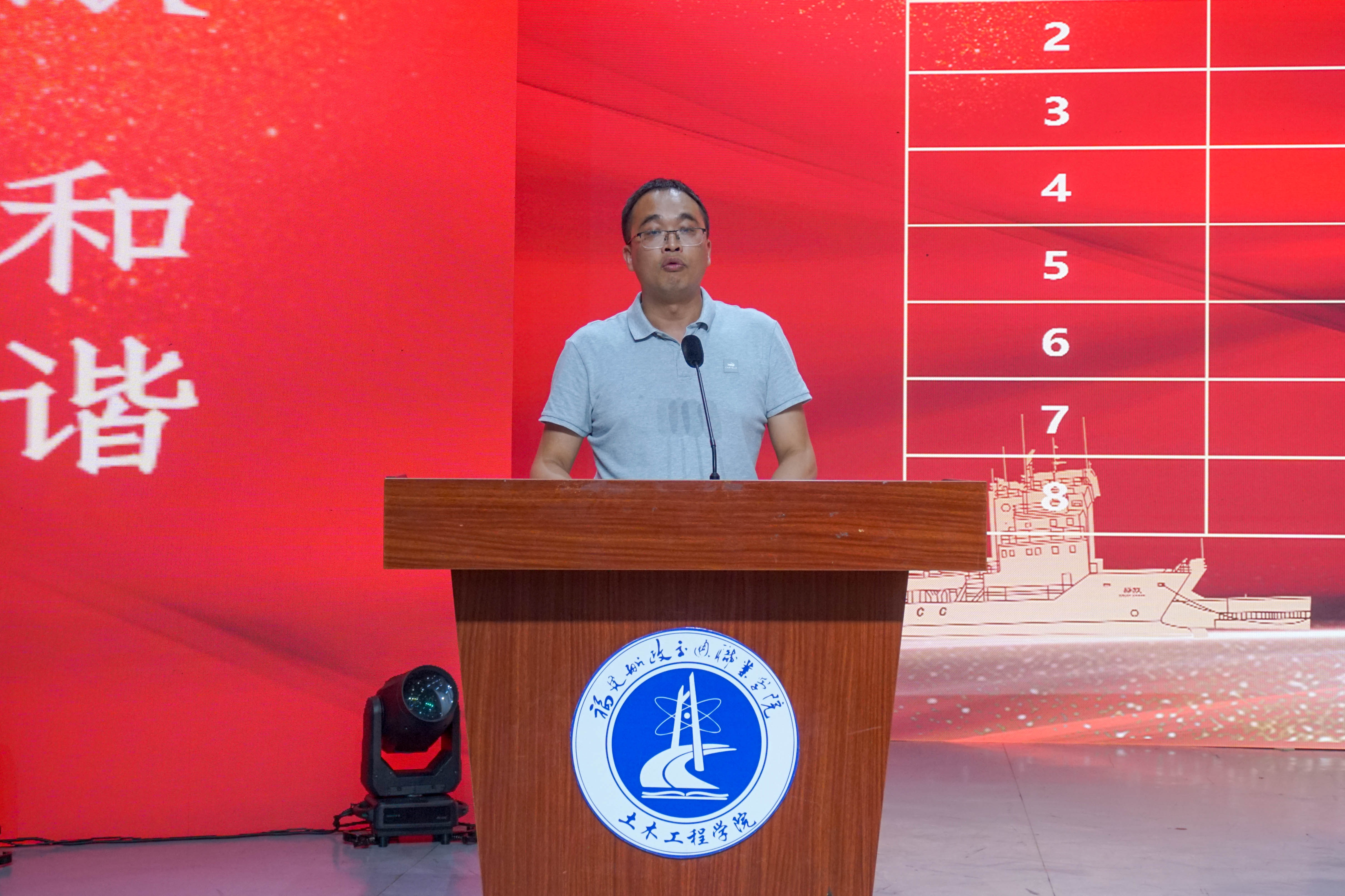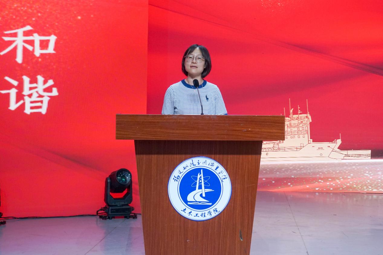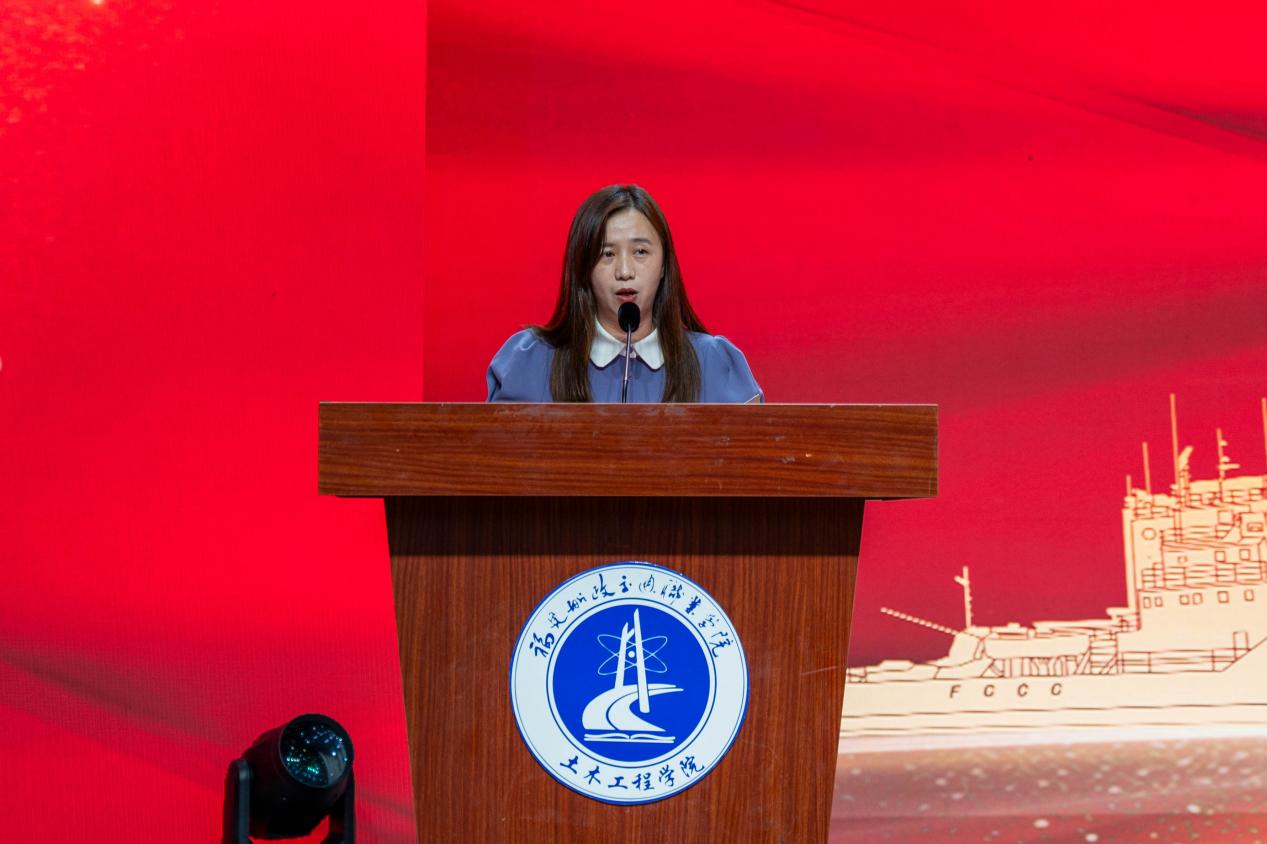 教師代表盧娜老師用真摯的語言回顧了與學(xué)生們共處的繪圖教室、實訓(xùn)基地時光,勉勵大家牢記“求是、自強、求實、創(chuàng)新” 的船政校訓(xùn)。希望畢業(yè)生們堅守對土木行業(yè)的熱愛,肯鉆研、敢擔(dān)當(dāng),走出精彩人生。