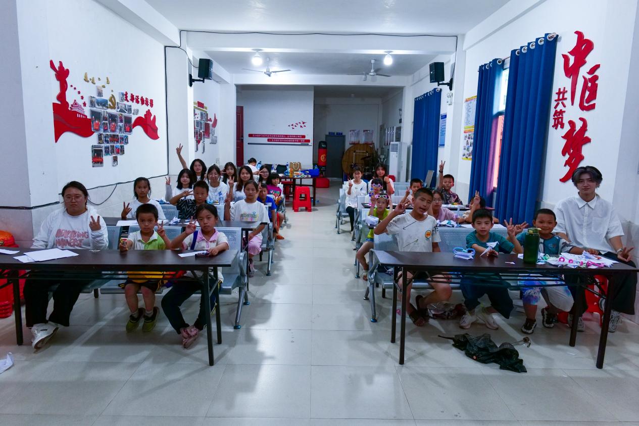 圖為實踐團(tuán)在三溪鄉(xiāng)溪源村開展課堂活動的畫面