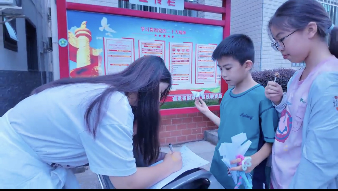 圖為實踐團(tuán)在三溪鄉(xiāng)溪源村對小朋友進(jìn)行調(diào)查問卷