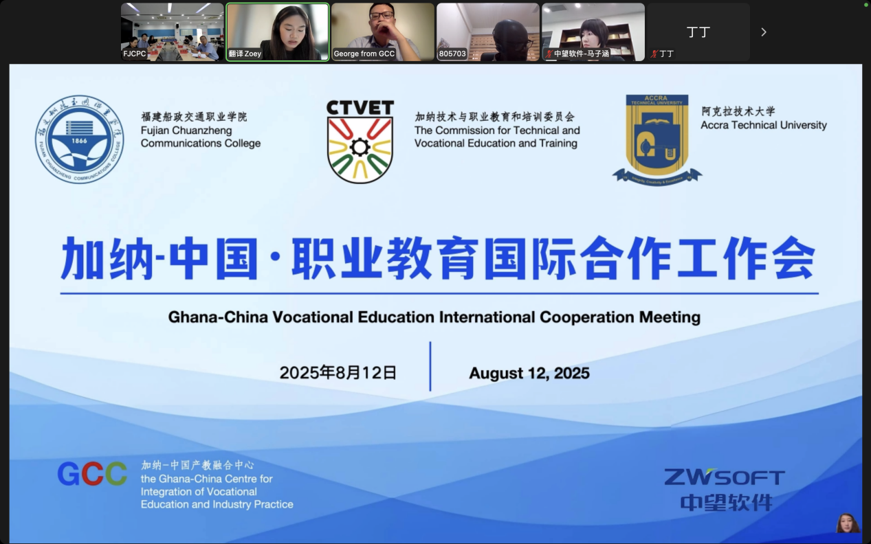 福建船政交通職業(yè)學(xué)院方面,與會人員包括副校長陳常暉,土木工程學(xué)院院長黃穎,副院長卓維松,建筑工程技術(shù)教研室主任吳愷云,測繪地理信息技術(shù)教研室主任李琳。加納方面,與會人員包括阿克拉技術(shù)大學(xué)常務(wù)校長Engr.Prof. Amevi Acakpovi,工程學(xué)院院長Ing.Dr. Tina Wemegah,土木工程系主任Ing.Dr. Prodeo Agbotui。同時(shí),加納-中國產(chǎn)教融合中心主任鄭凱歌,以及中望軟件業(yè)務(wù)總監(jiān)于敖、教研總監(jiān)馬子涵、業(yè)務(wù)經(jīng)理邱俊、技術(shù)經(jīng)理林燦旭參加了會議。